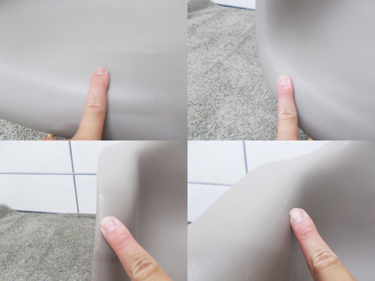 - かなり強い濃い黄ばみ・変色が商品全体にある。(例、座面・背もたれ、脚部等にある。)