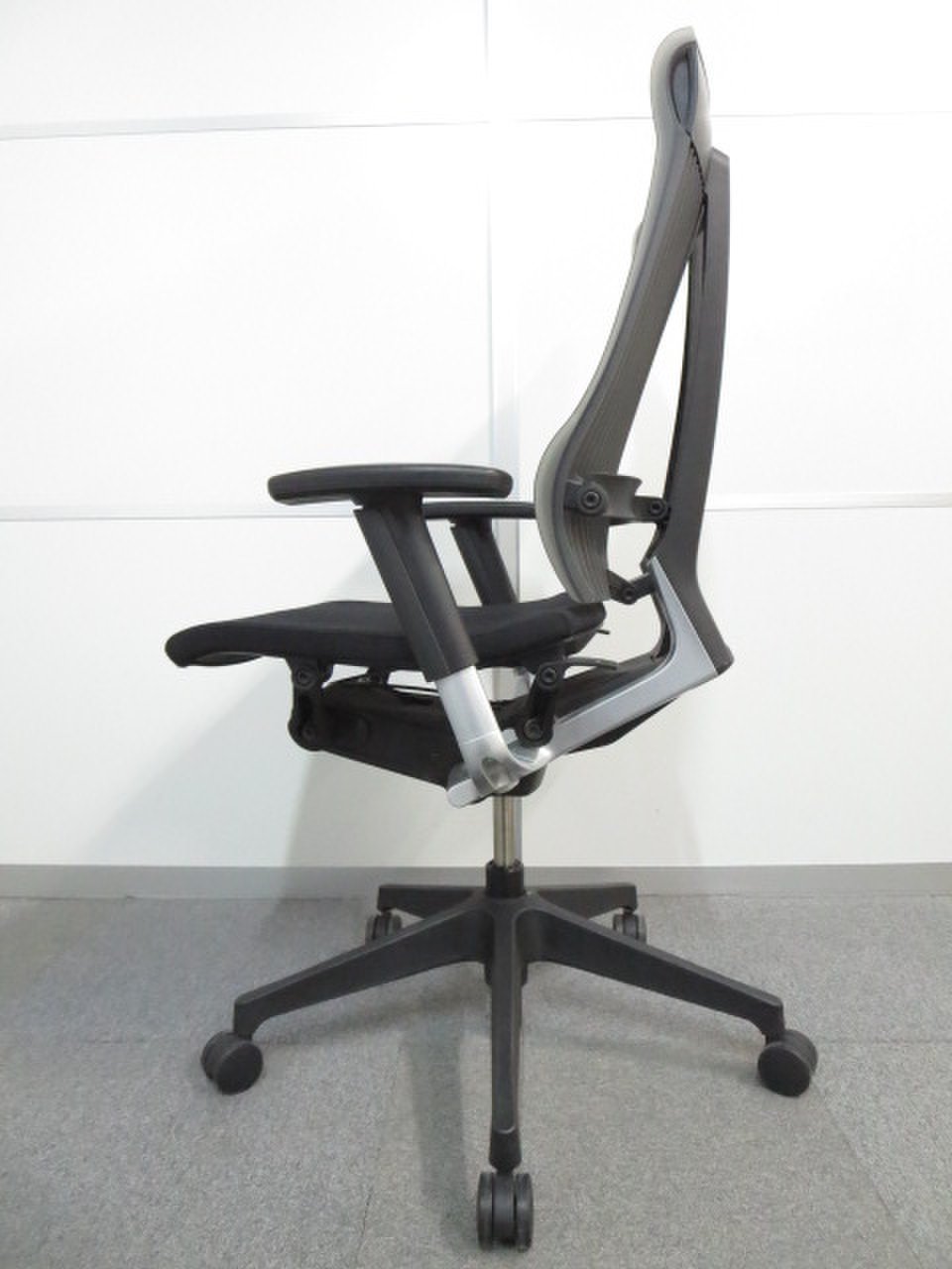 一番の特長は、着座時にチェアがピタっと体にフィットしてくれることです。 人がチェアの座り心地を調節するのではなく、チェアが人に合わせて動くのです!着座時に座面が沈み込みながら後方へスライドし、それと同時に背もたれの腰部分が前にせり出し、「ずっと座っていたくなる」と言われるほどの座り心地に調節してくれます。それを実現しているのが、A.L.S(アクティブ・ランバー・サポート)機構とP.S.S(パッシブ・スライド・シート)機構です。 さらに、背もたれにかかる体圧を徹底的に分析して作られた絶妙なカーブが、常に腰をサポートしつつ背骨のラインに沿ってくれます。