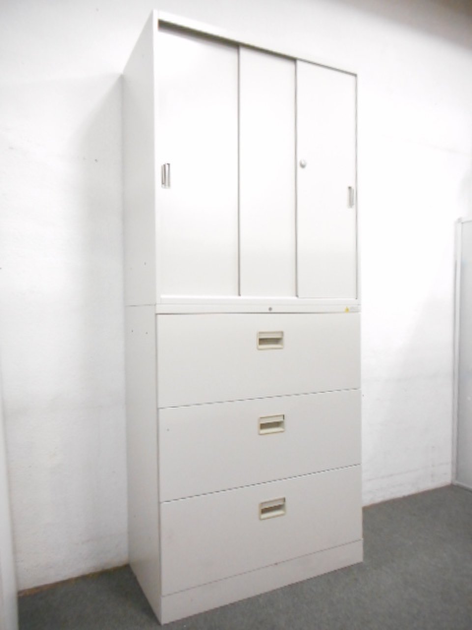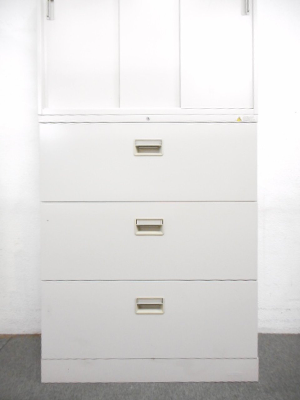 【まとめて揃います!】使い勝手の良い3枚引き違い書庫と3段ラテラルのセット!オカムラ/42シリーズ/ニューグレー/シリンダー錠【TH】【倉庫在庫品】