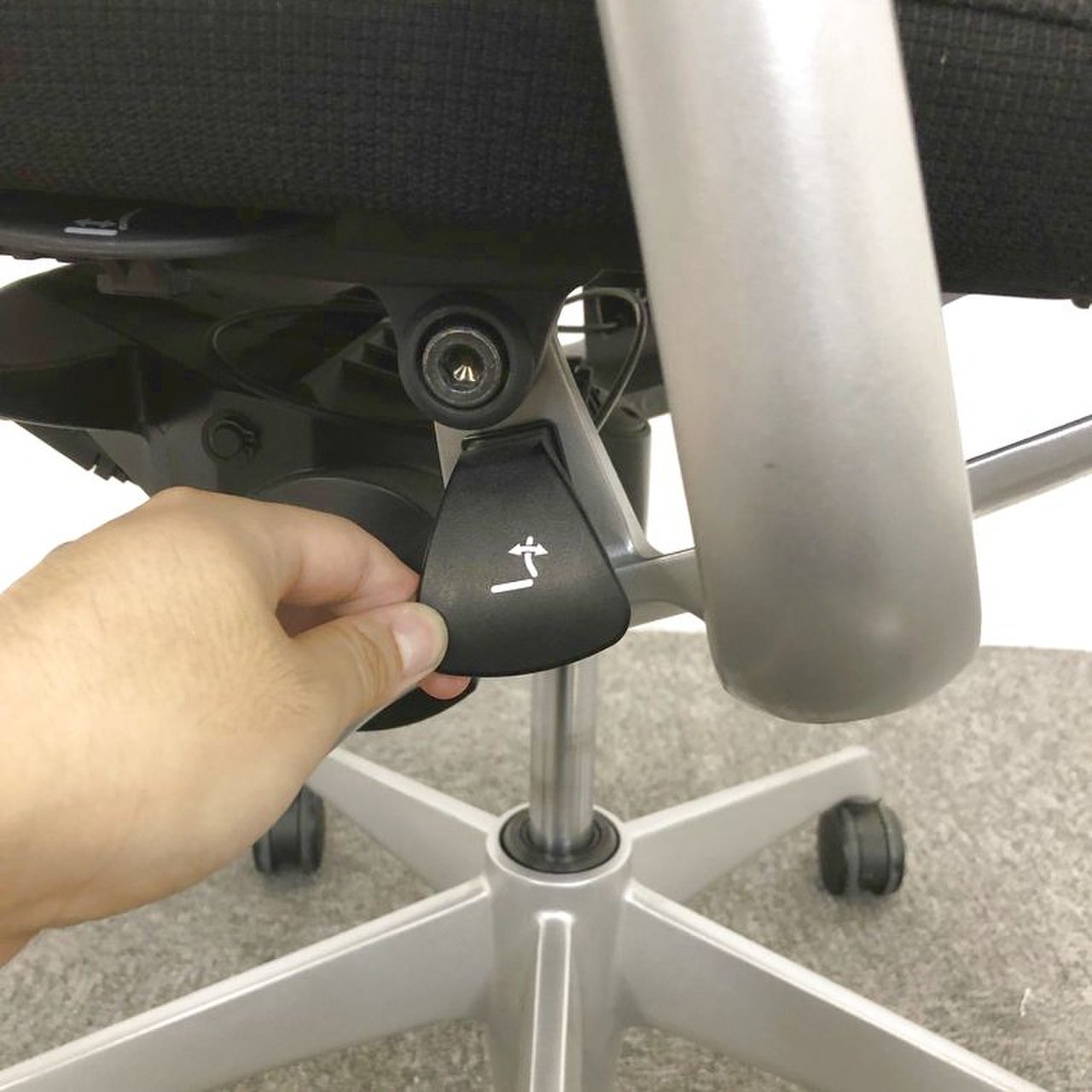 - 座面の右下にあるレバーの操作により座面位置を上下に100mm分調整することが可能です。
