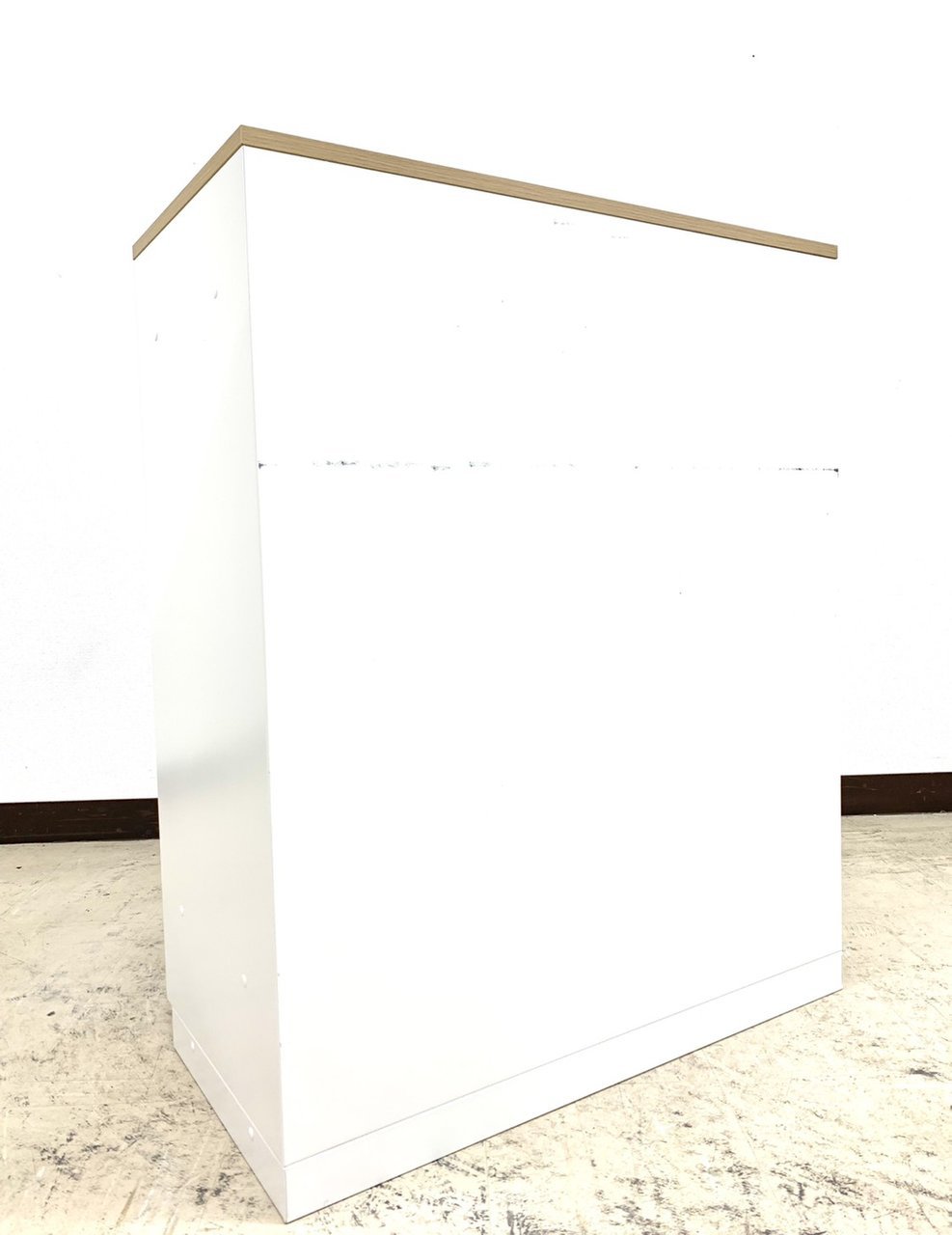 - 目立つ箇所複数あり深い傷・凹みが商品全体にある。(例、天板、正面、背部、サイド部分にある。)