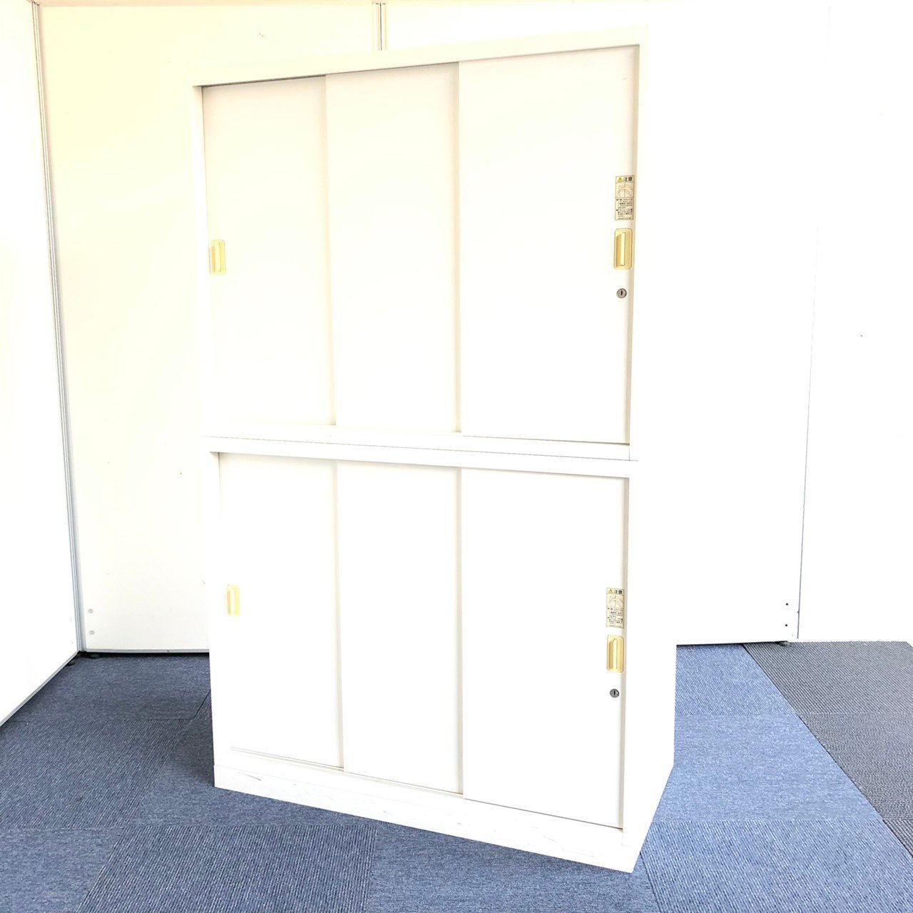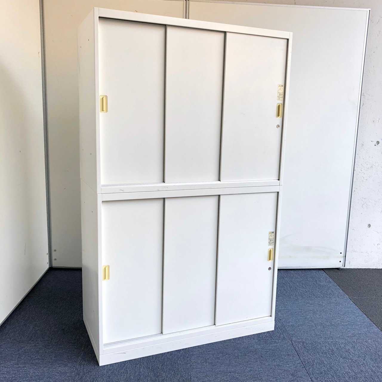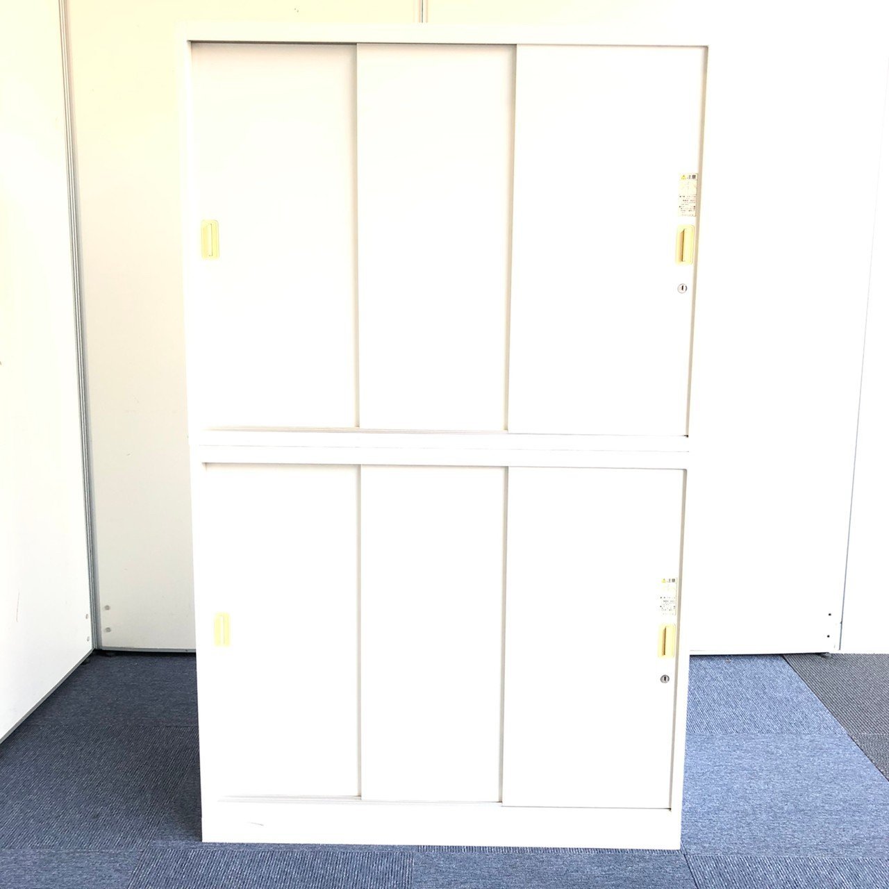 オカムラ製 人気レクトラインシリーズ ホワイト シリンダー W800xD450XH1050 3枚引戸 ※ベースなし 3枚引き違い書庫!!