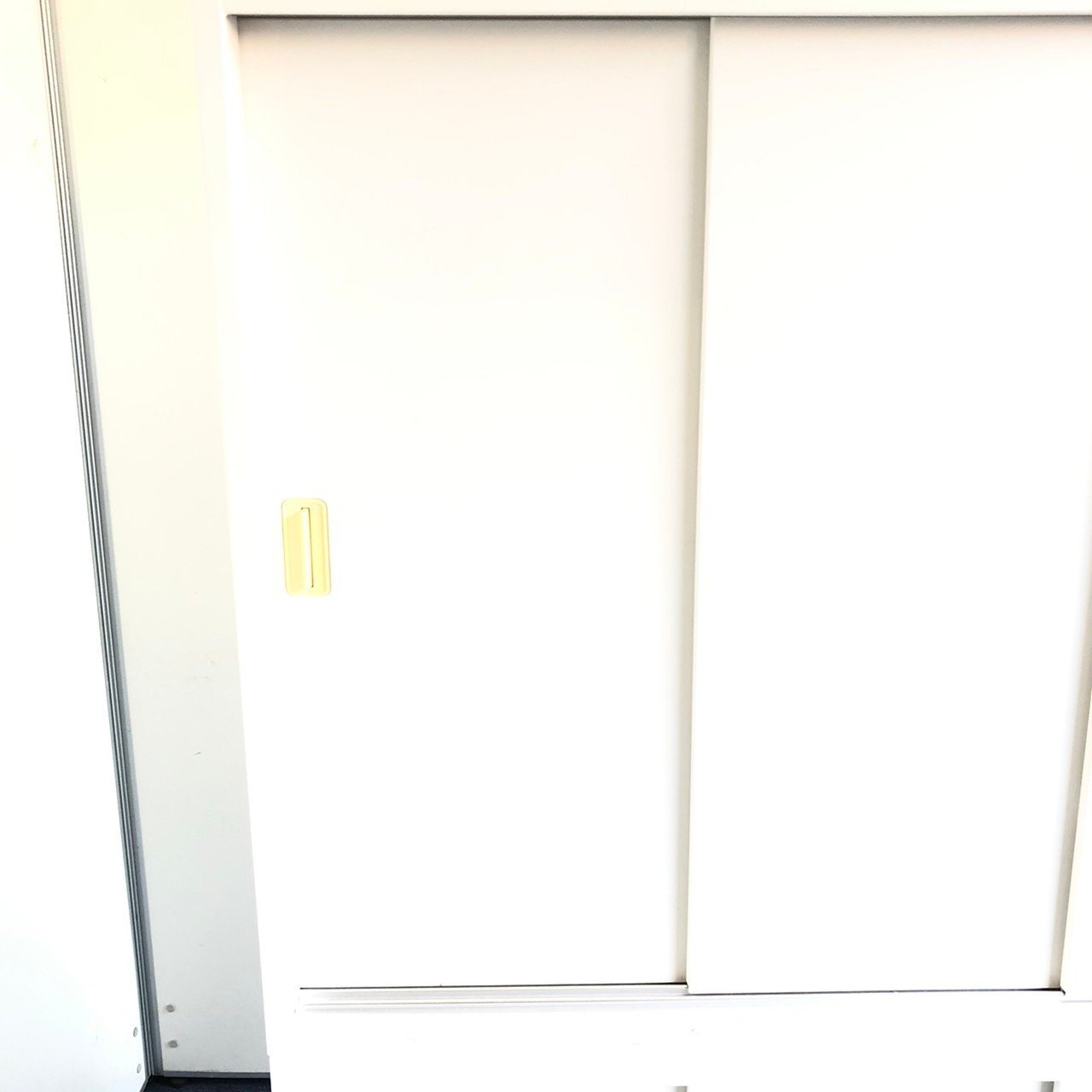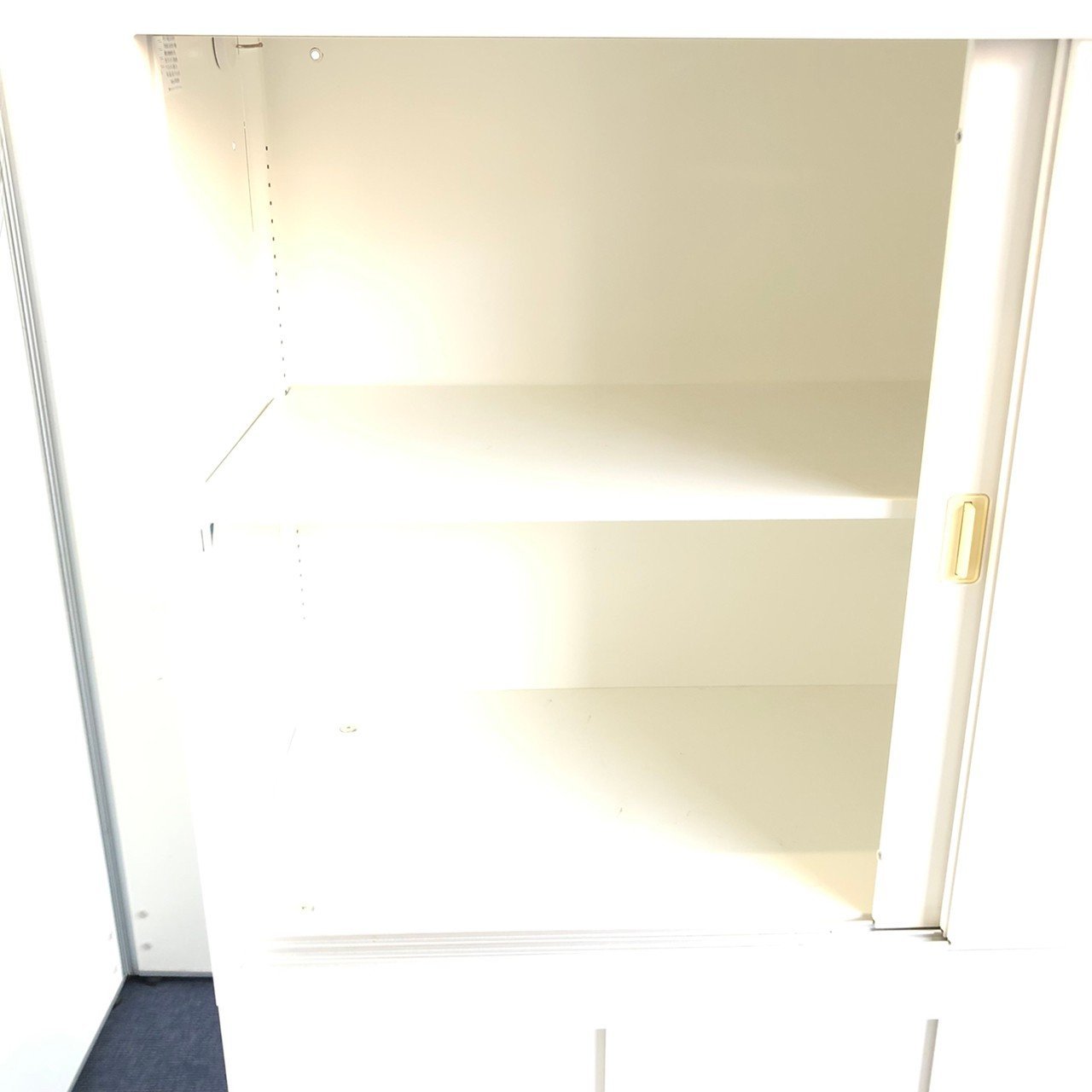スライド式の扉のため導線を邪魔しません!使い勝手抜群の2枚引き違い書庫が入荷! ■オカムラ/レクトライン/ホワイト 2枚引き戸
