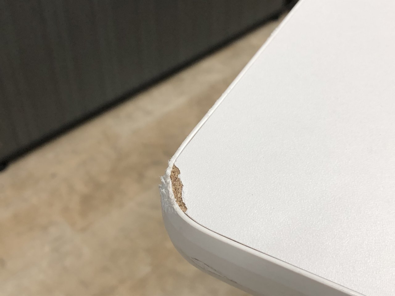 - 壊れている天板歪み、アジャスター無し、キャスター使用不可のようにそのテーブルの本来の効用を果たすための機能に不具合がある。