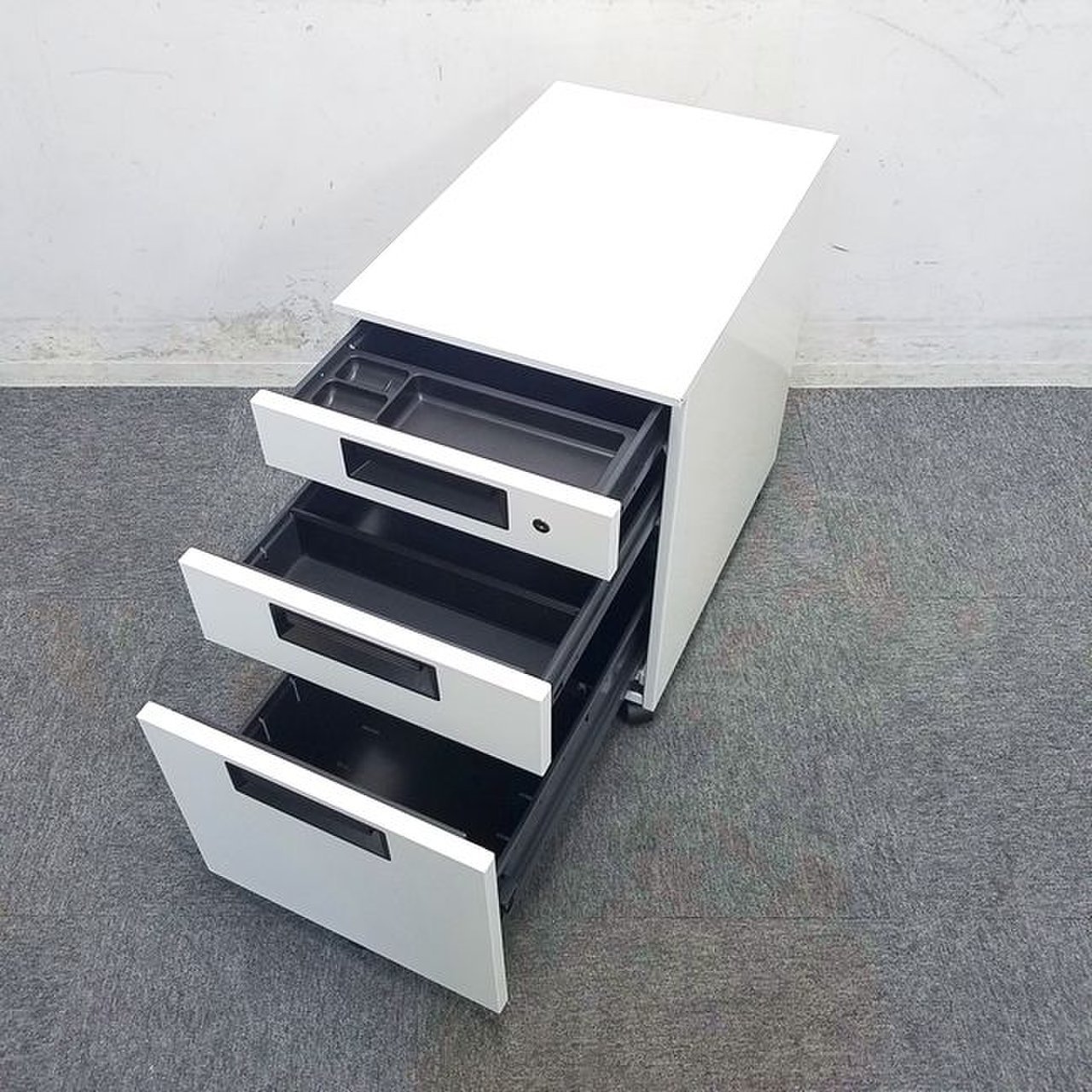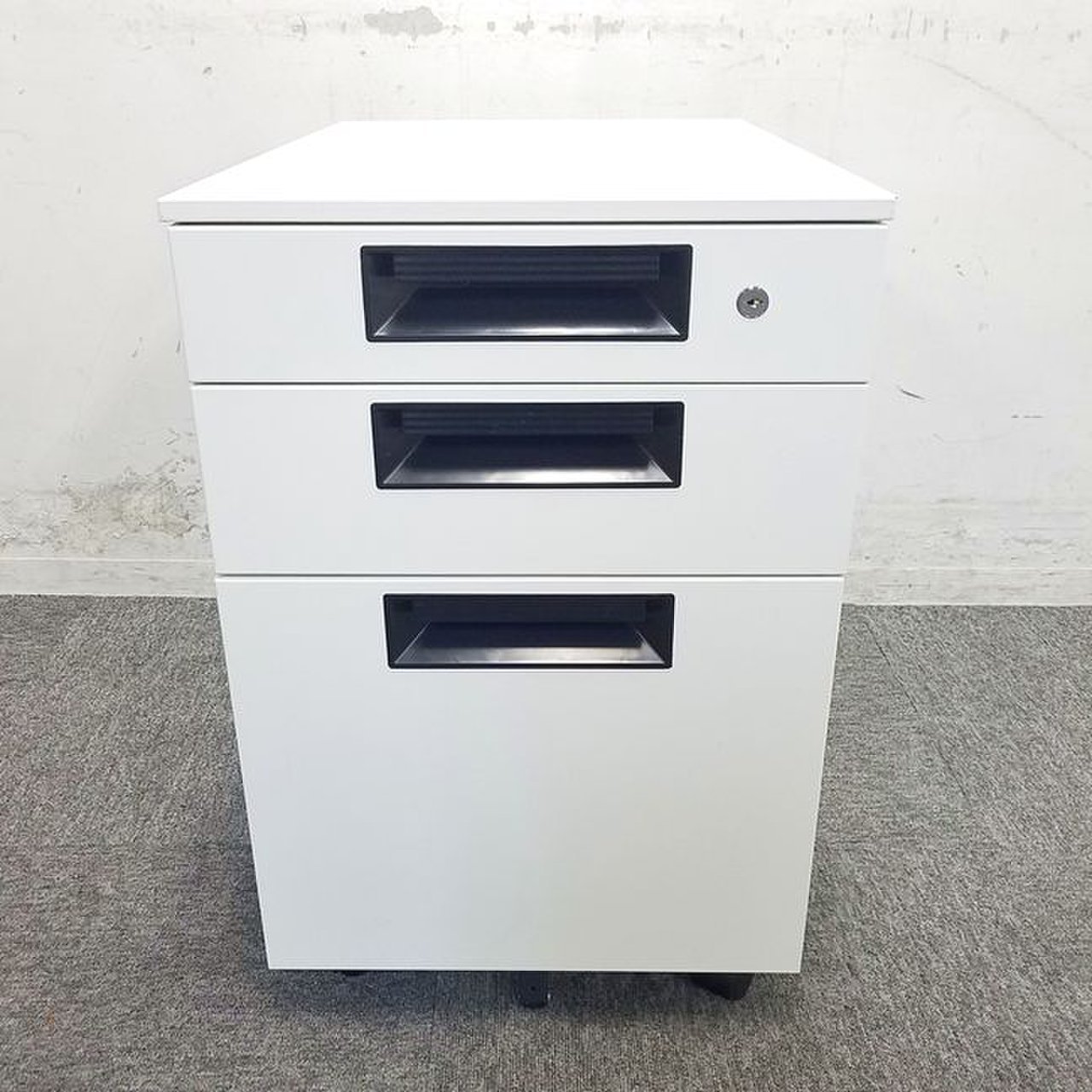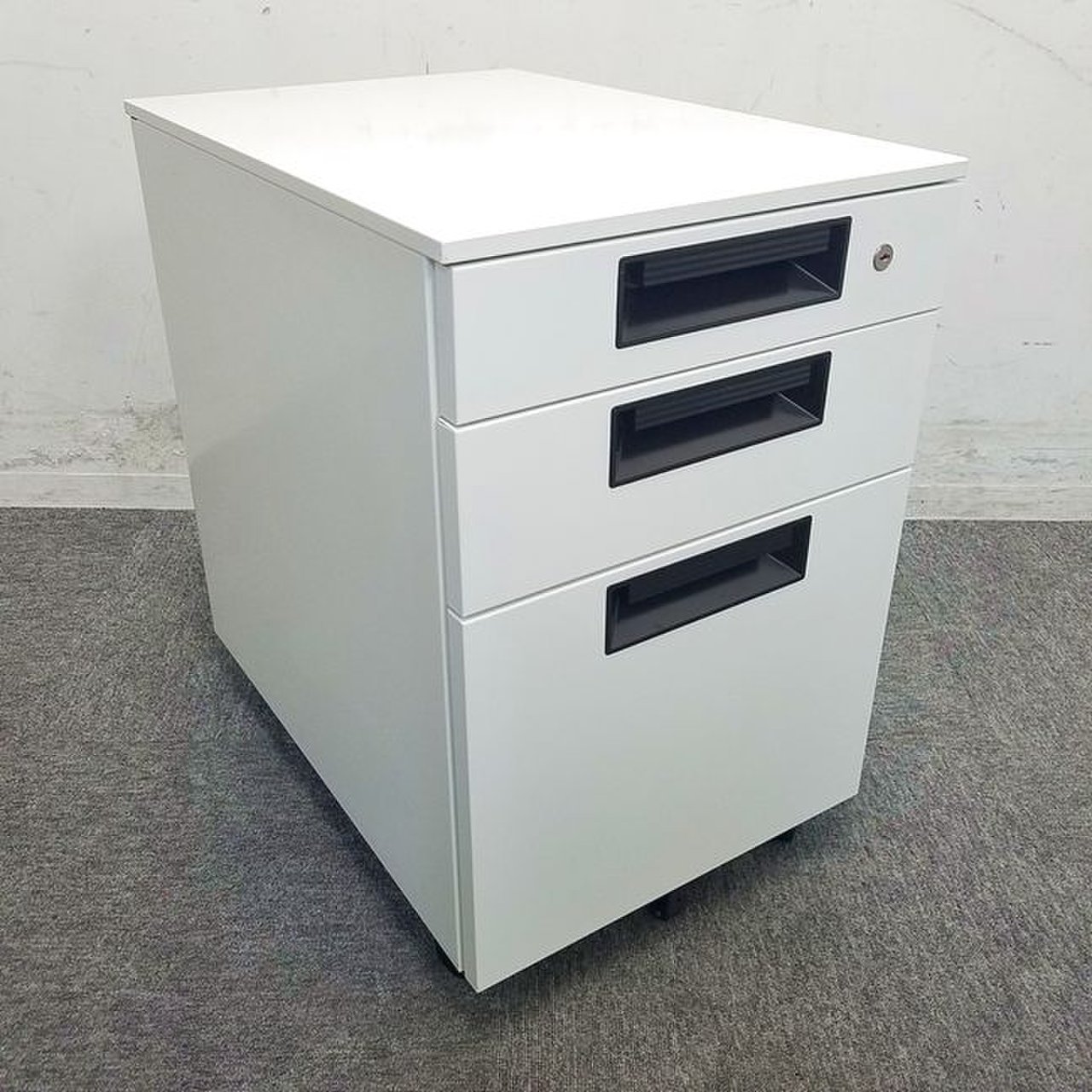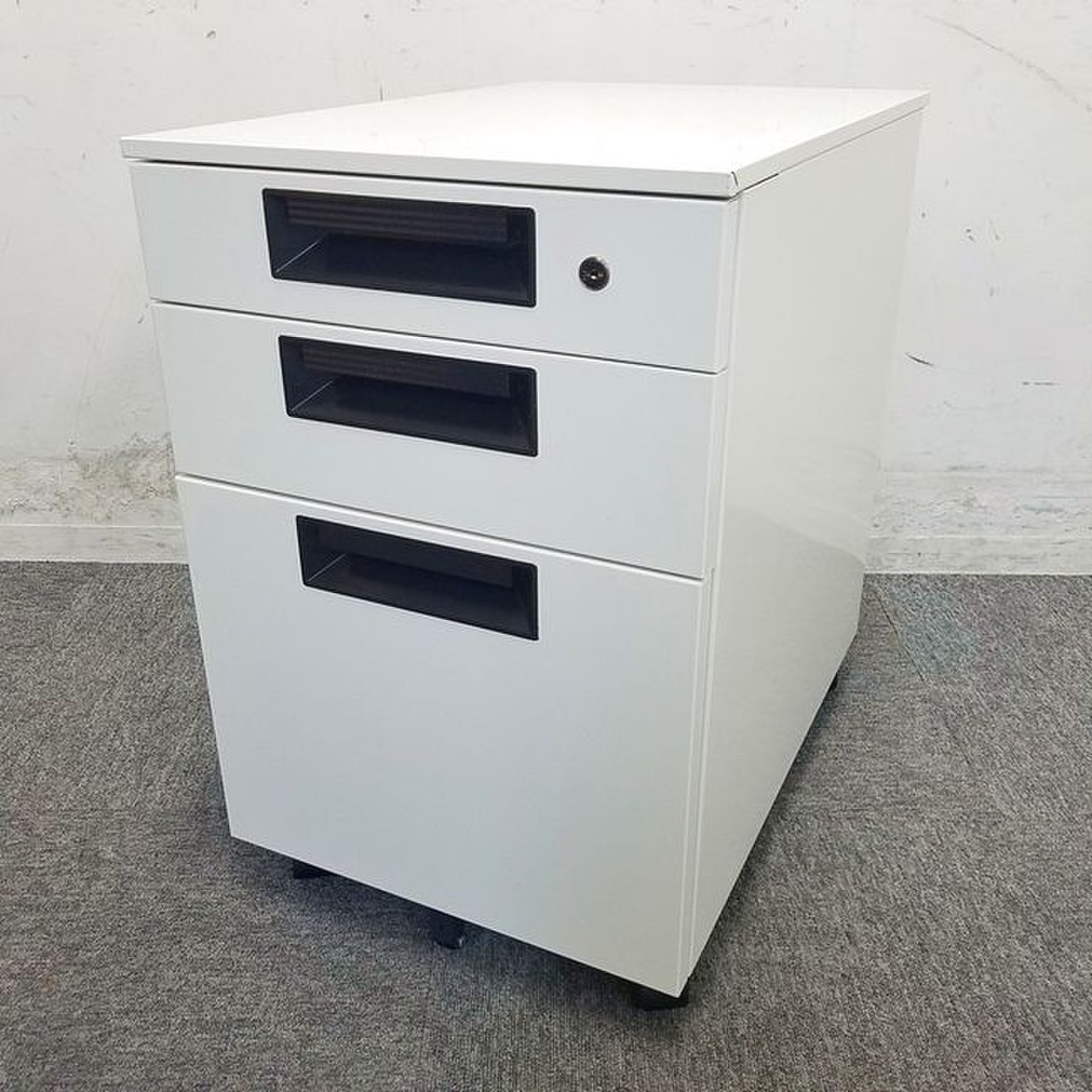 - 一部不具合ありその脇机・ワゴンの本来の効用を果たすための機能以外の一部が使用不可な状態。(例、引出が開閉しづらい、 キャスターロック機能使用不可、ラッチ不良 等がある。)