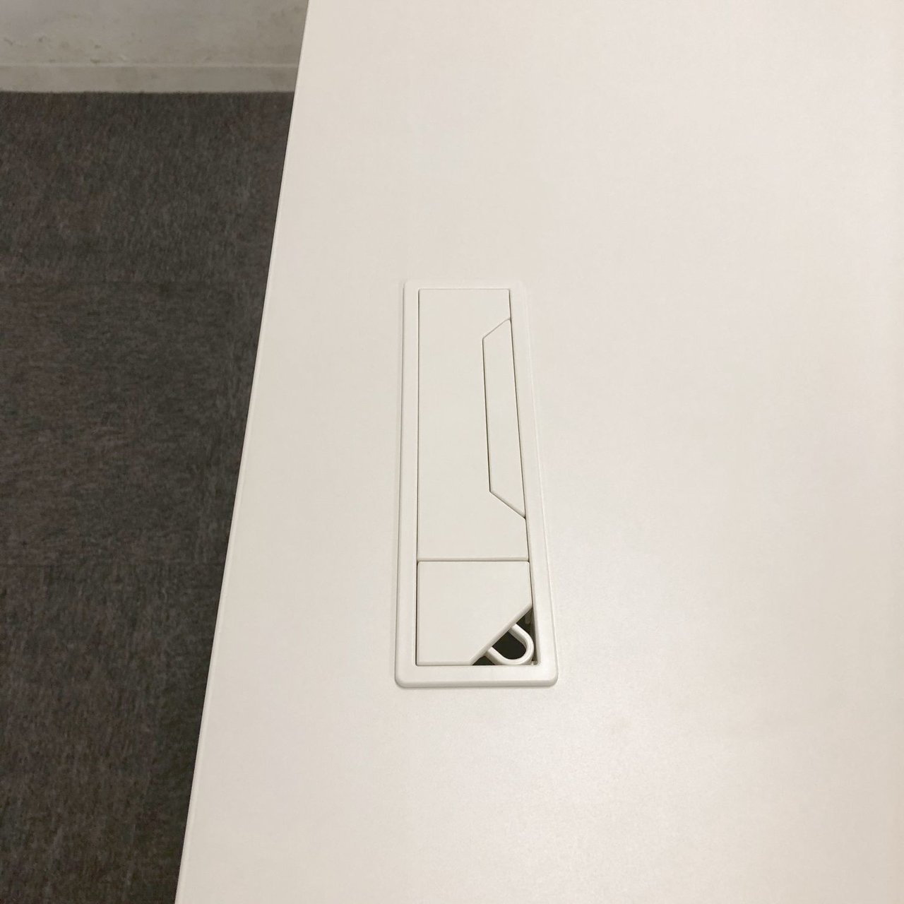 - 机の角がシャープなので、隣り合うデスクがフラットにつながります。すっきりとしたデザインです。