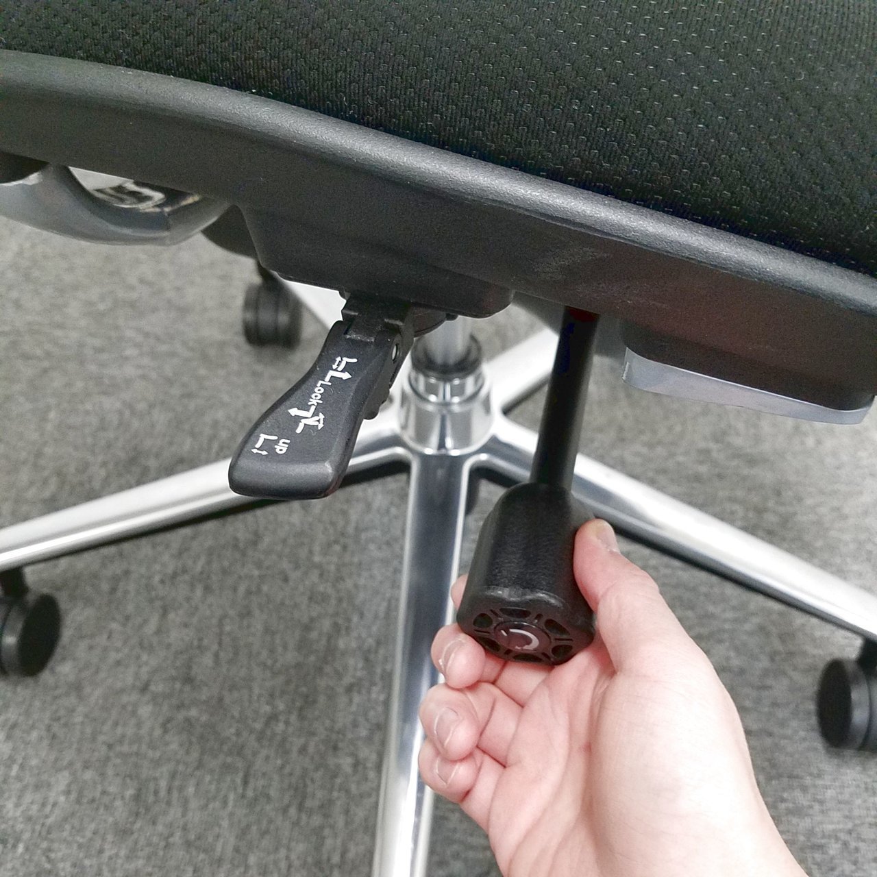 - 不具合なし・部材欠けありそのチェアの本来の効用を果たすための機能以外の一カ所が使用不可の状態にある。(例:背もたれロック不良と奥座調整等の内数カ所)