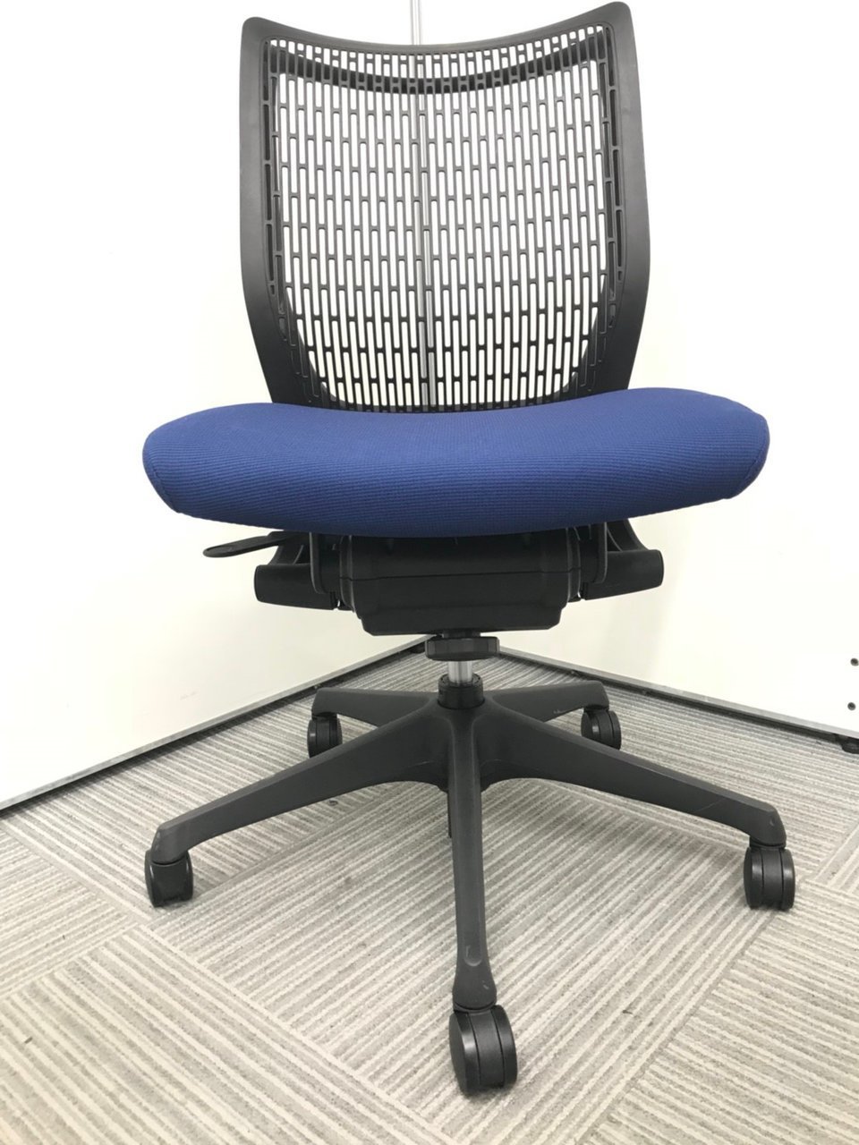 ■オカムラ(okamura)製 ■ヴィスコンテ(Visconte)チェア ■ミディアムブルー×ブラックシェル ■肘無し ■ローバック ■クッションタイプ ■オススメ/大人気/定番商品 【弊社使用欄:A01034963 】