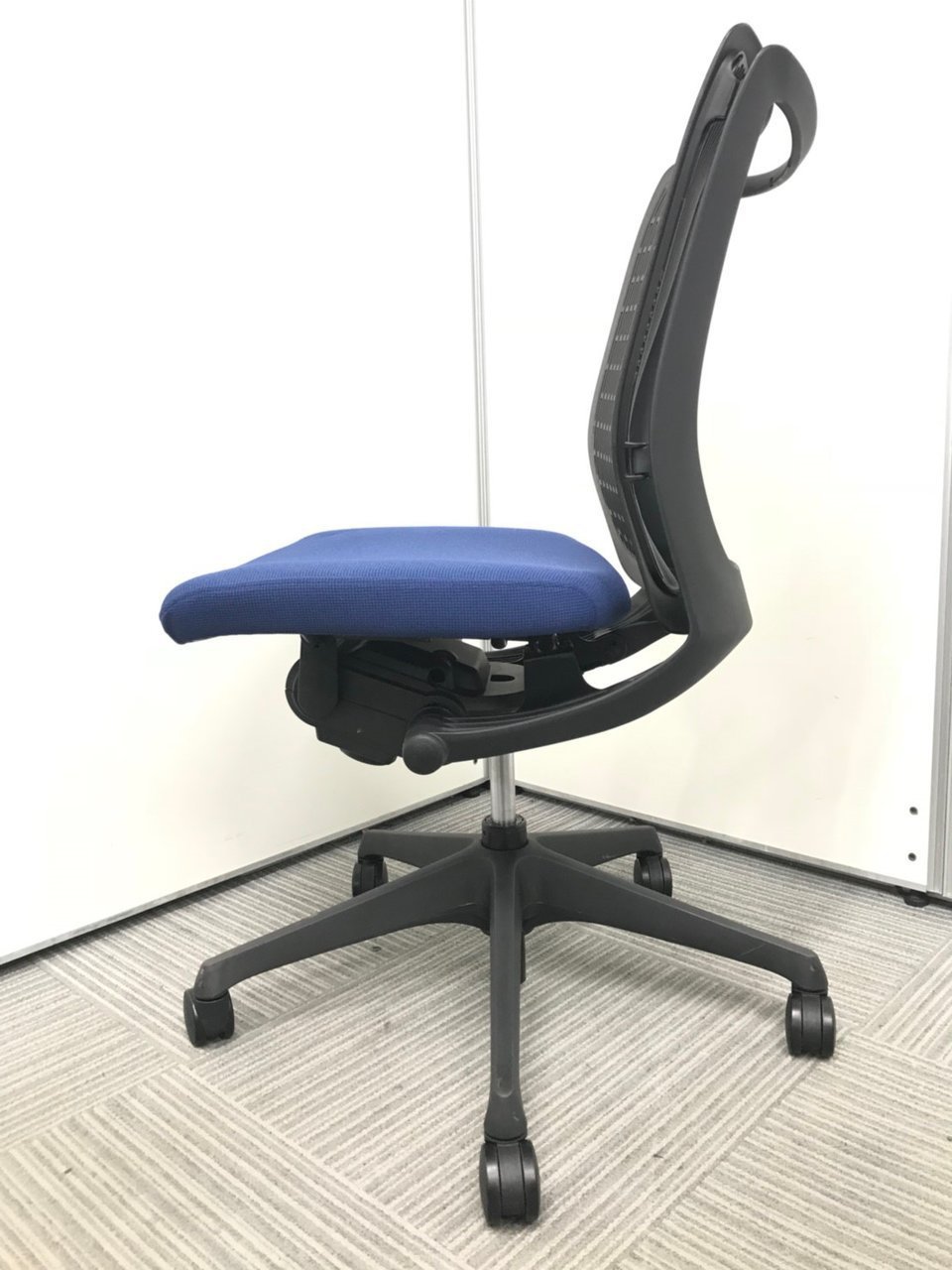 ■オカムラ(okamura)製 ■ヴィスコンテ(Visconte)チェア ■ミディアムブルー×ブラックシェル ■肘無し ■ローバック ■クッションタイプ ■オススメ/大人気/定番商品 【弊社使用欄:A01034963 K】