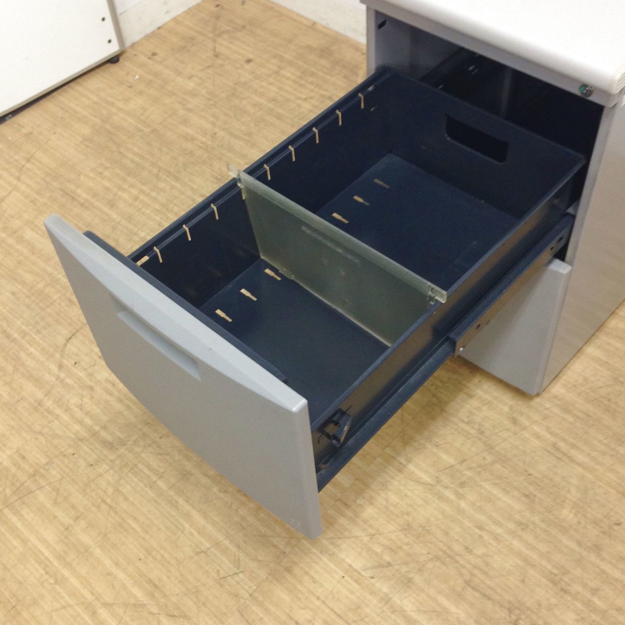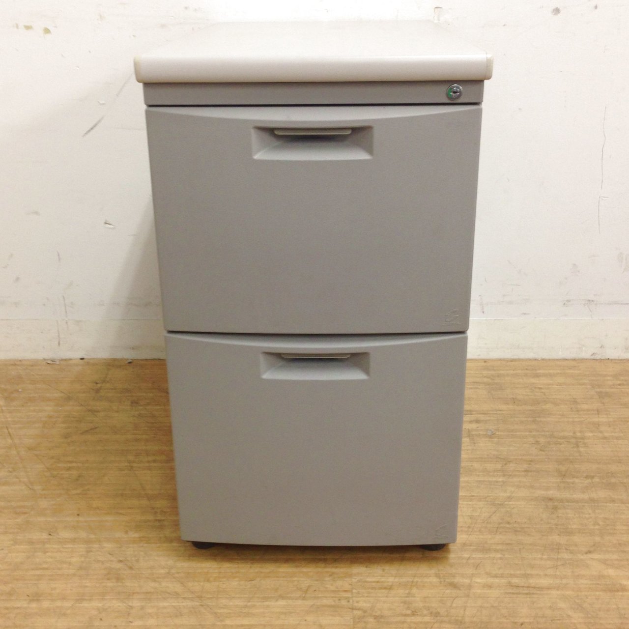 イトーキ CZシリーズ 2段脇机 鍵付き シリンダー錠 グレー デスク横に置いて作業スペースの拡張を ※樹脂部分に日焼け若干あり