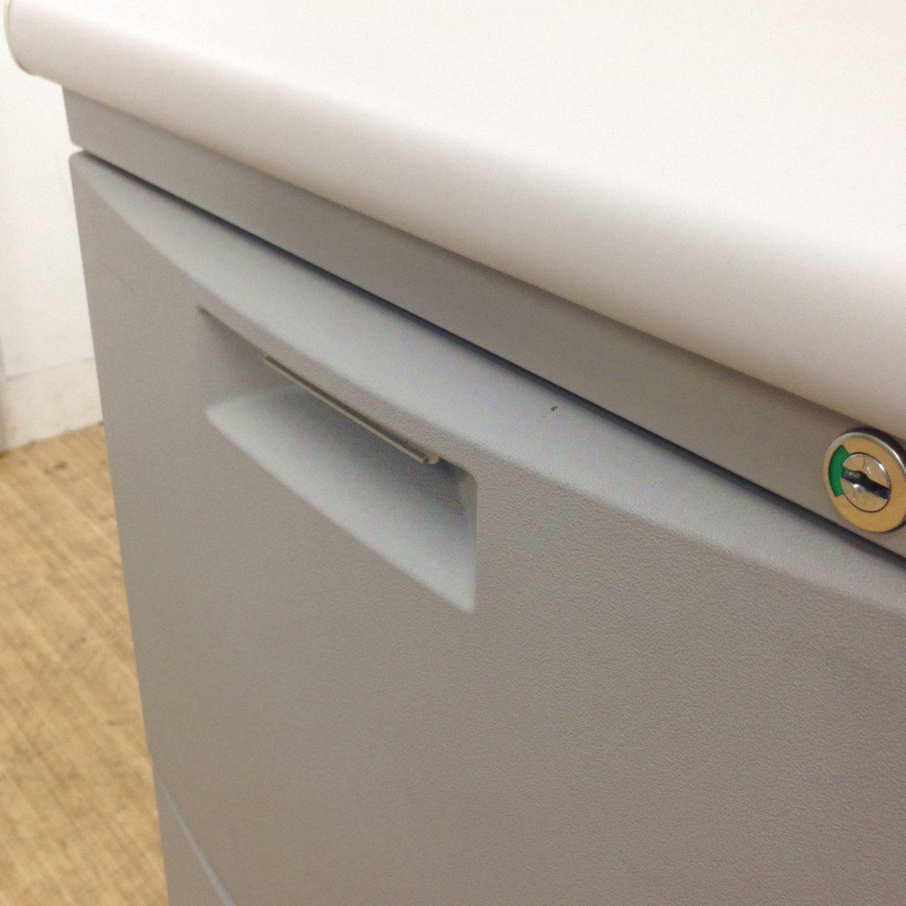 【デスク横に置いて収納と作業スペースを同時に確保!】■イトーキ製 CZシリーズ 2段脇机 ■H700mm ■グレー シリンダー錠 【デスク周りの書類をスッキリ整理!】