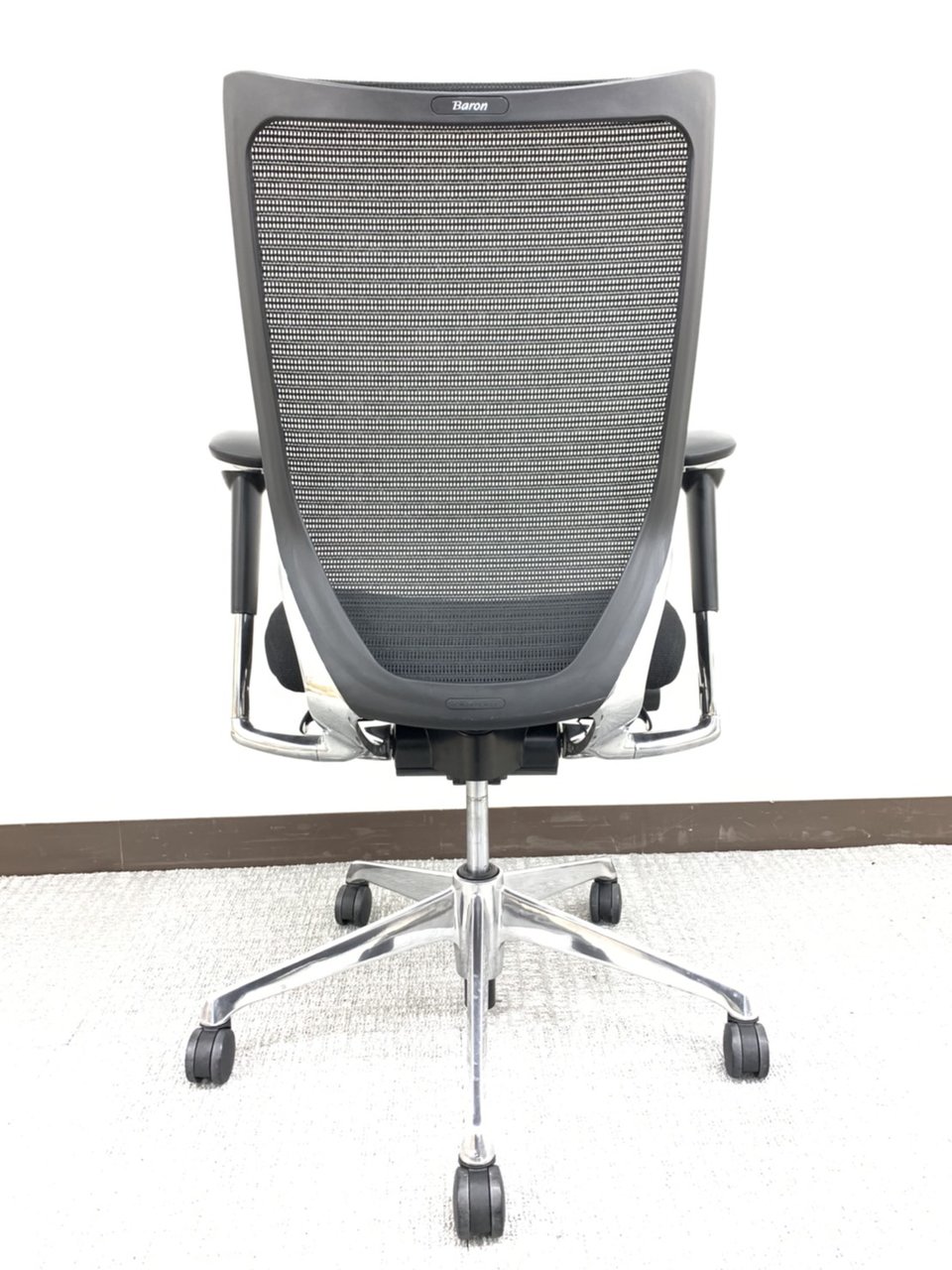 【硬めの座面が大人気!国産メッシュチェアの代表格!オフィスの執務室、会議室におすすめ!】■オカムラ(okamura)製 バロン(Baron)チェア 肘付き ハイバック 背面メッシュ ■固定肘 ■色:ブラック【IB】