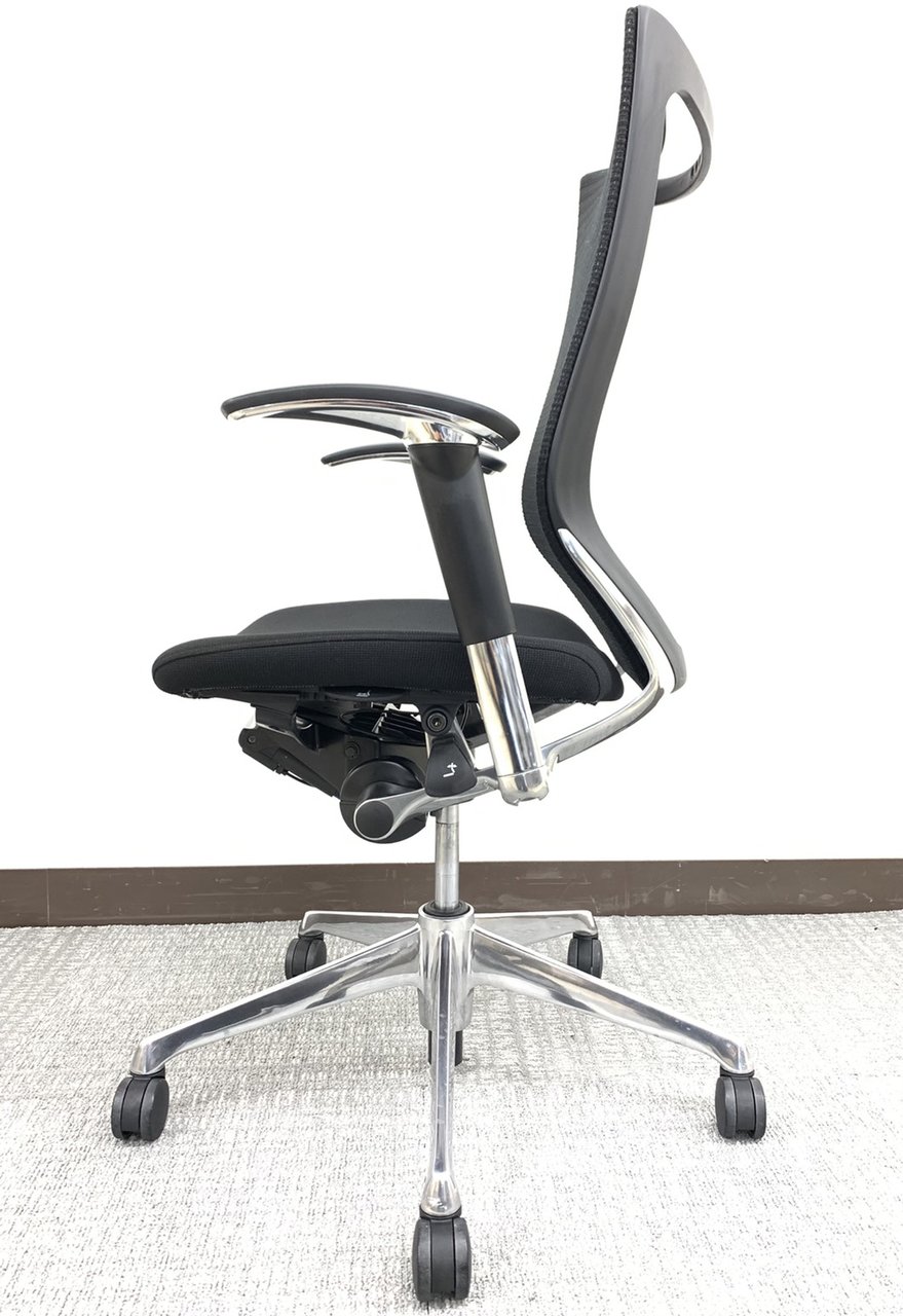 【オフィスの執務室、会議室におすすめ!】■オカムラ(okamura)製 バロン(Baron)チェア 肘付き ハイバック ■背・座面メッシュ ■可動肘 ■ヘッドレスト付き ■ブラック【硬めの座面が大人気!国産メッシュチェアの代表格!】