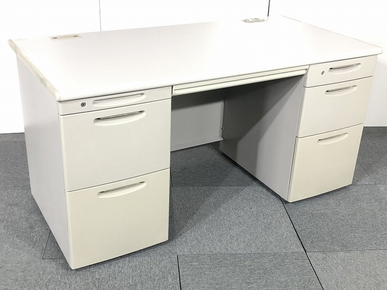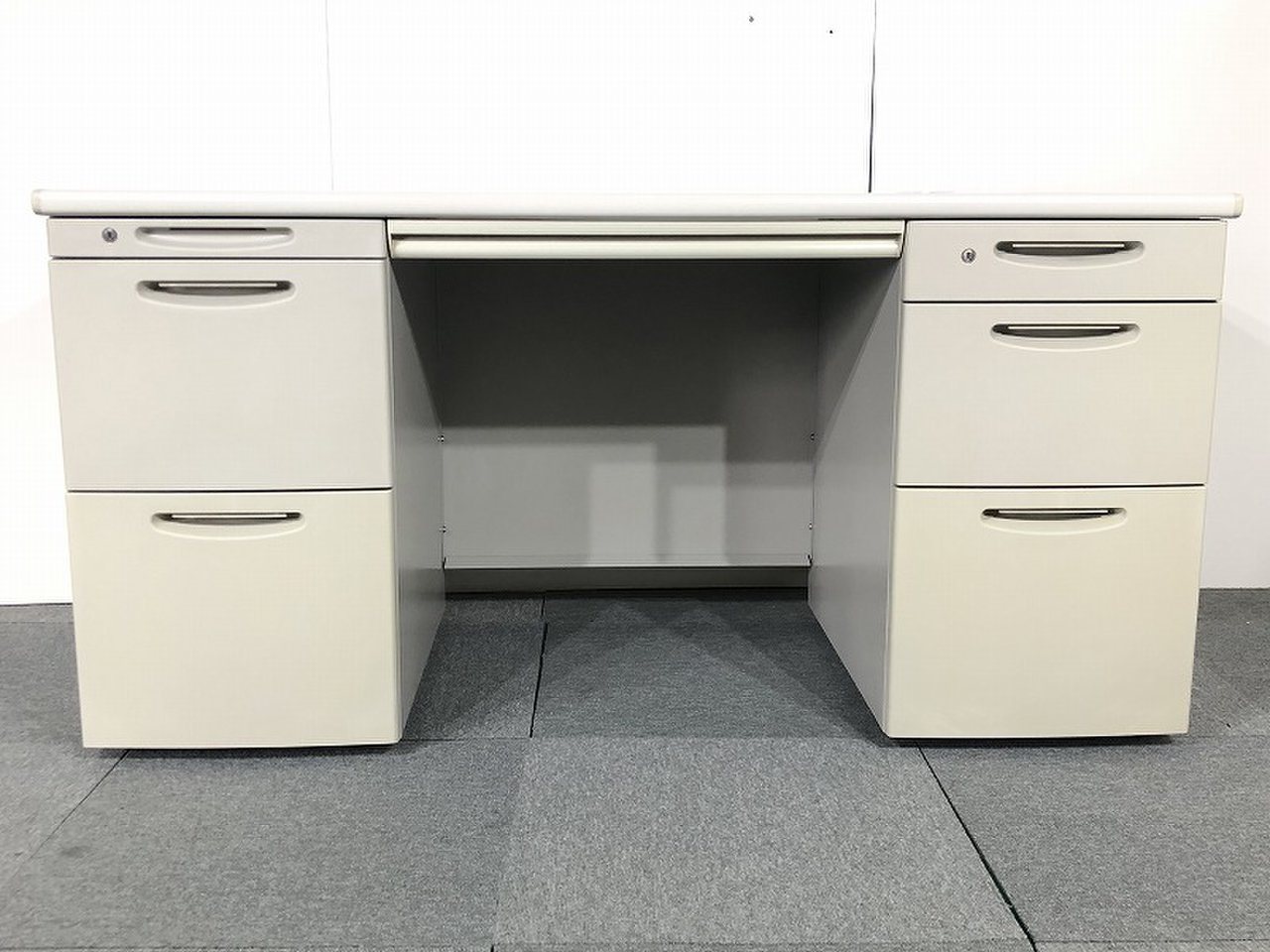 ☆W1400mm!【広々使える!たっぷり収納!】■オカムラ製 両袖デスク W1400×D700×H700mm ■スタンダードなデザインで使いやすい!