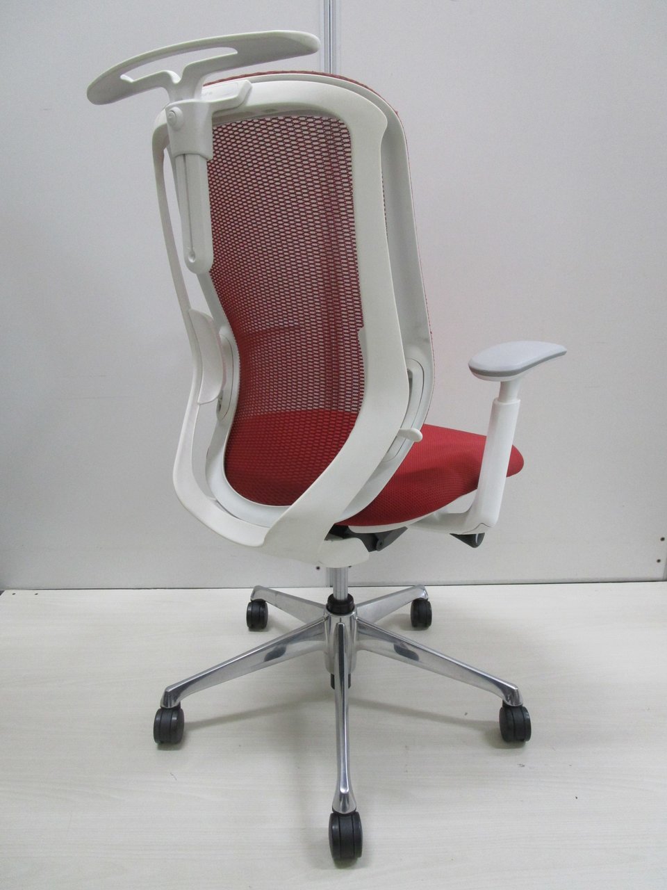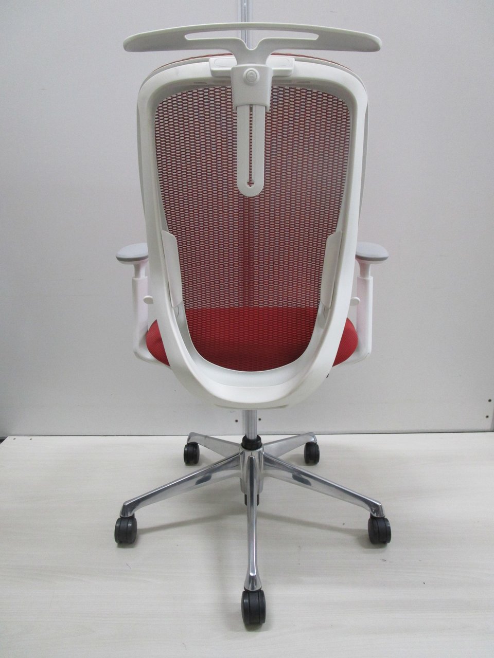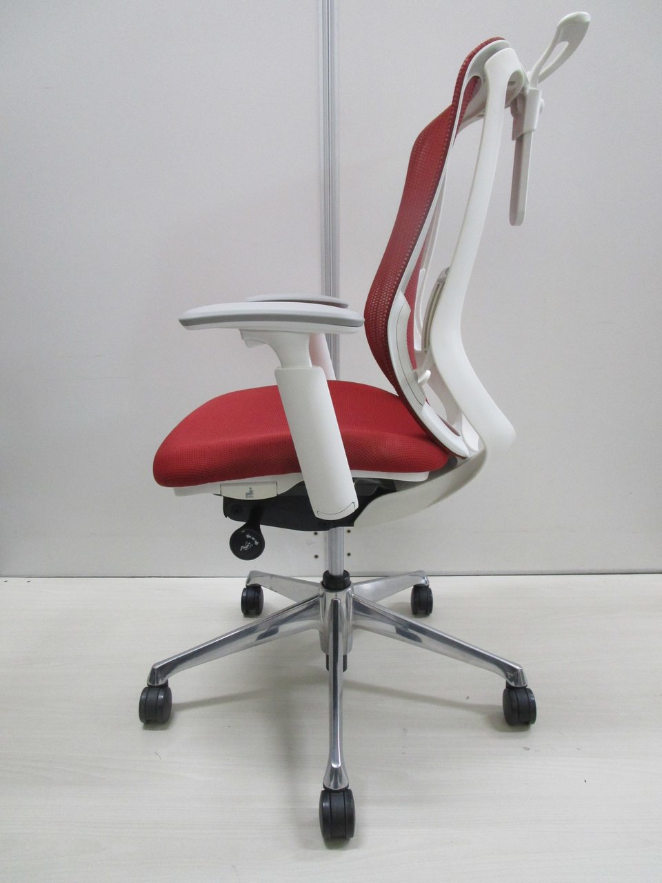 【大手町・神田サテライトCP】【三次元曲面が快適にフィット!!前傾チルト機能付の大人気メッシュチェア!】■オカムラ(okamura)製 シルフィー(Sylphy) 肘付き ハイバック ■メッシュバック ■可動肘 レッド/ フレーム色:ホワイト