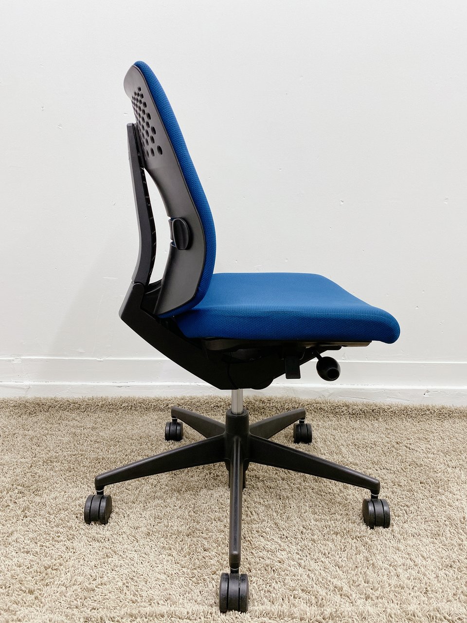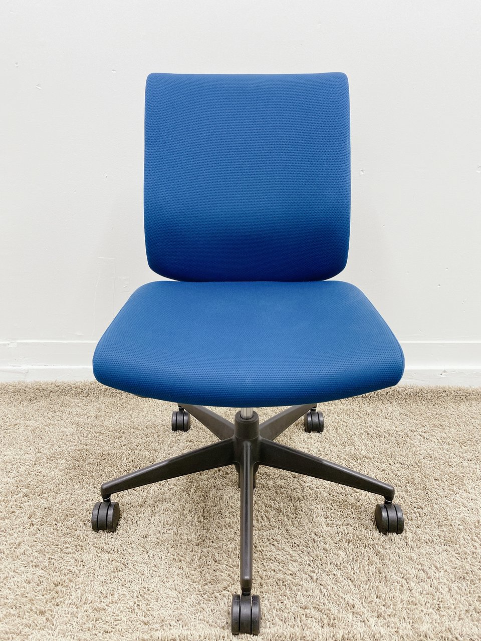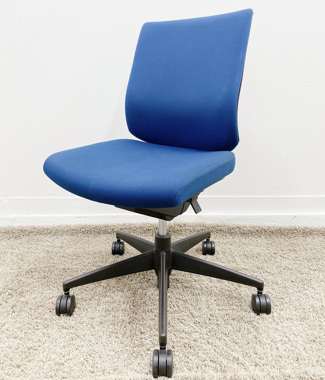 コクヨ ウィザード2 ローバック ロングセラーシリーズ プルシアンブルー×ブラックフレーム 肘無しモデル 定番の使いやすいチェア