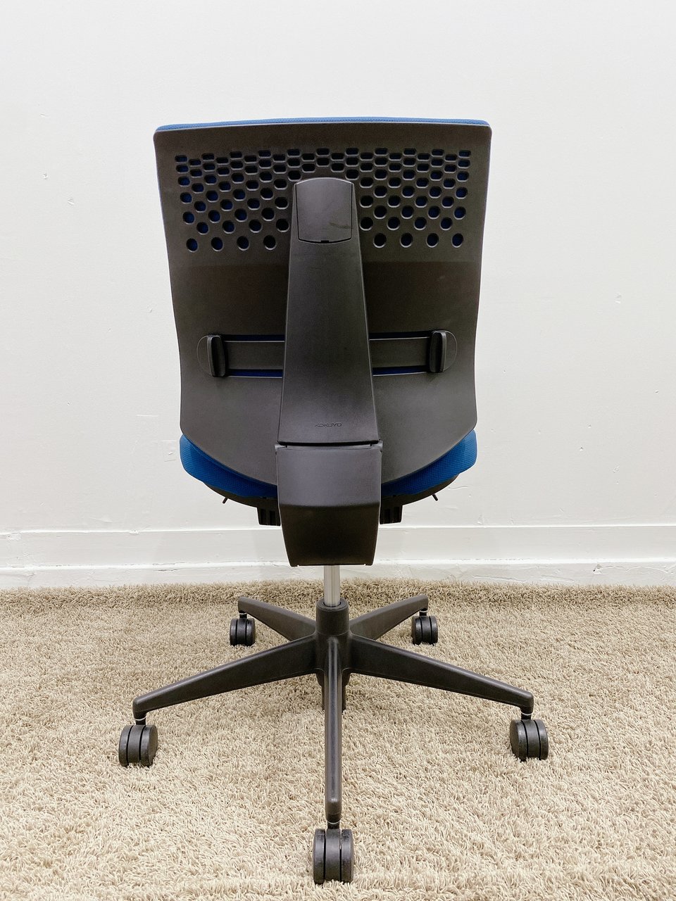コクヨ ウィザード2 ローバック プルシアンブルー×ブラックフレーム 肘無しモデル コートハンガー付き 定番の使いやすいチェア オフィスバスターズ梅田本店