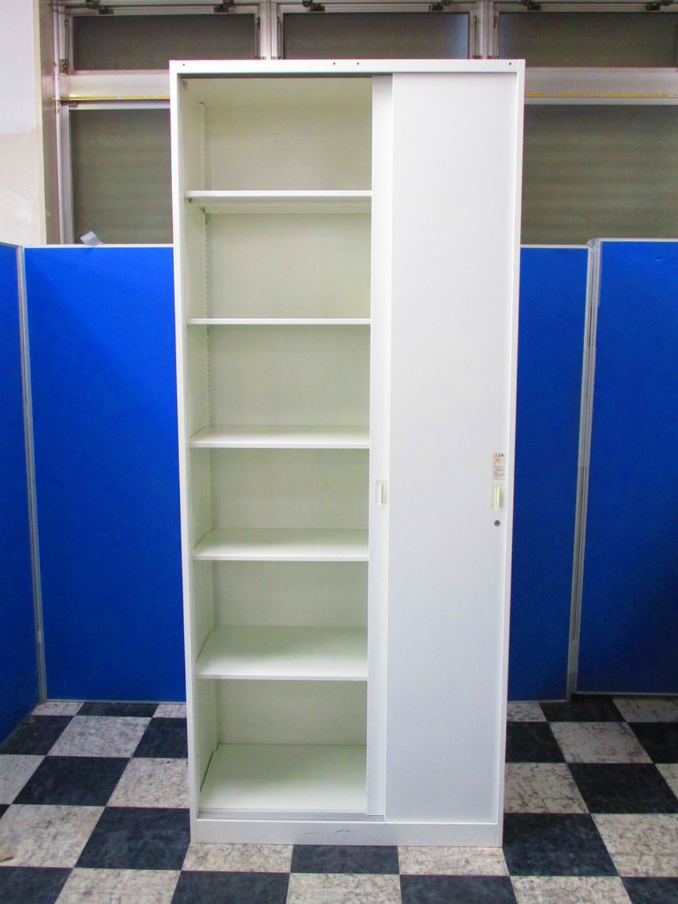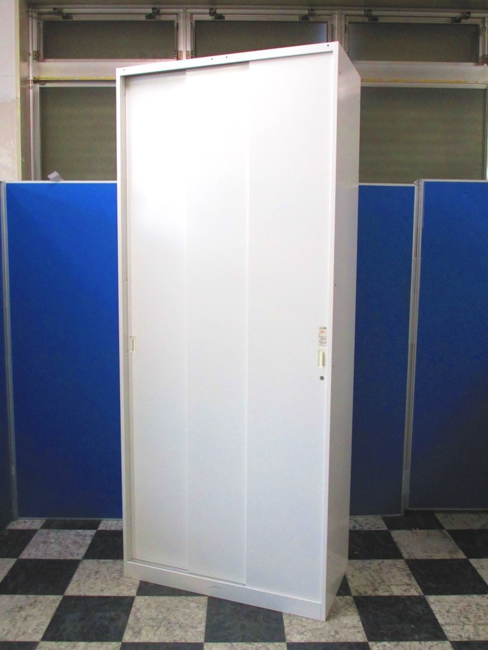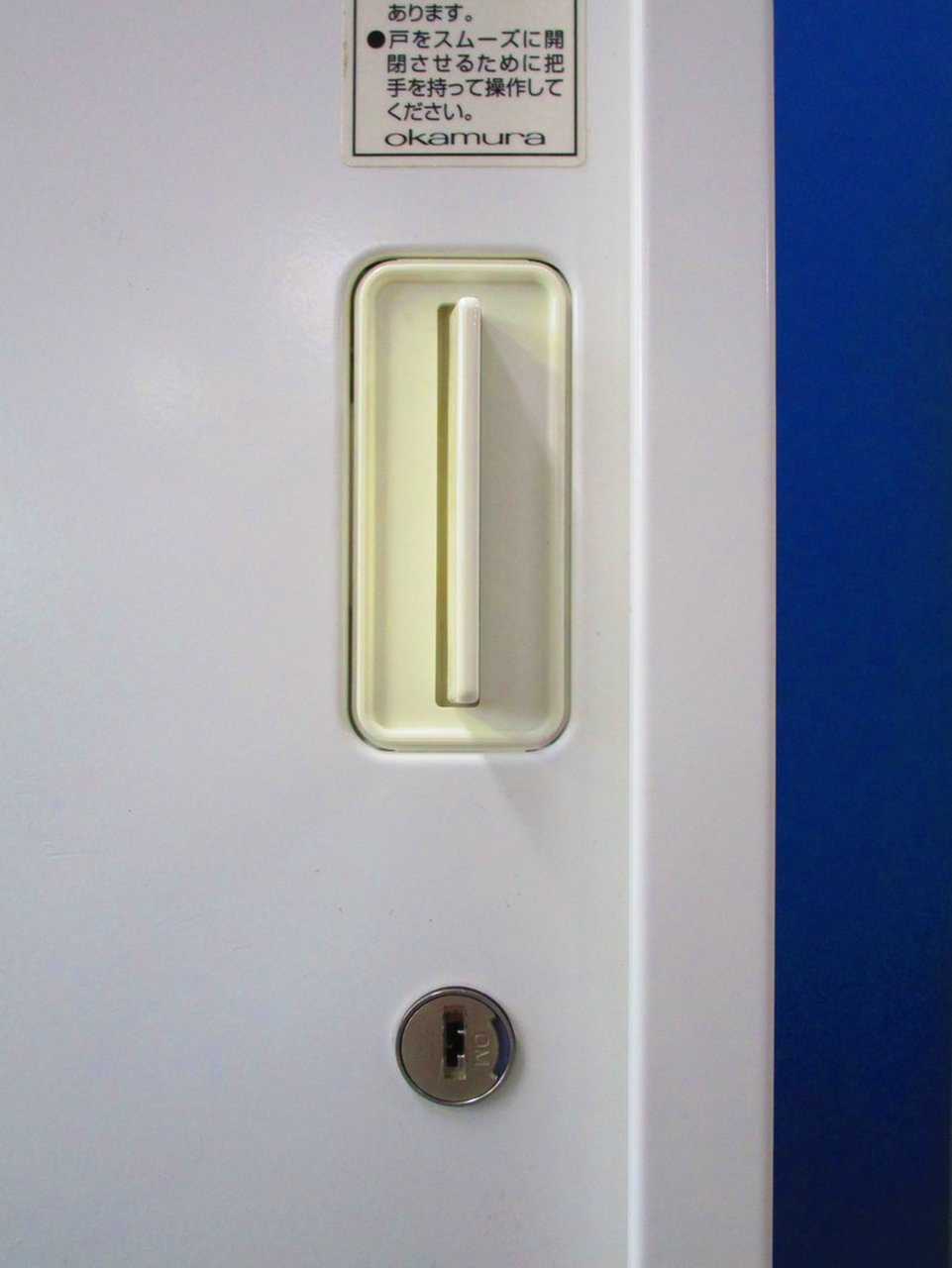 2枚引き戸書庫 オカムラ レクトライン 鍵付き シリンダー錠 ホワイト 天板無し スライド式の扉のため導線を邪魔しません