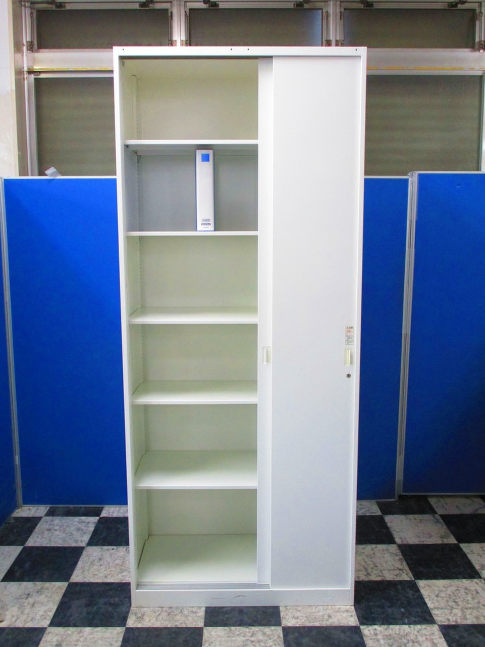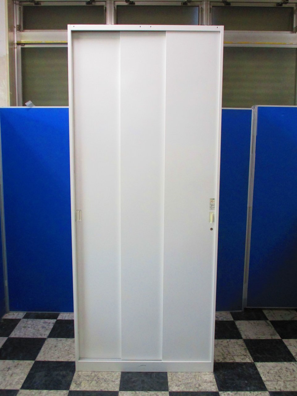 オカムラ製 人気レクトラインシリーズ ホワイト シリンダー W800xD450XH1050 3枚引戸 ※ベースなし 3枚引き違い書庫!!