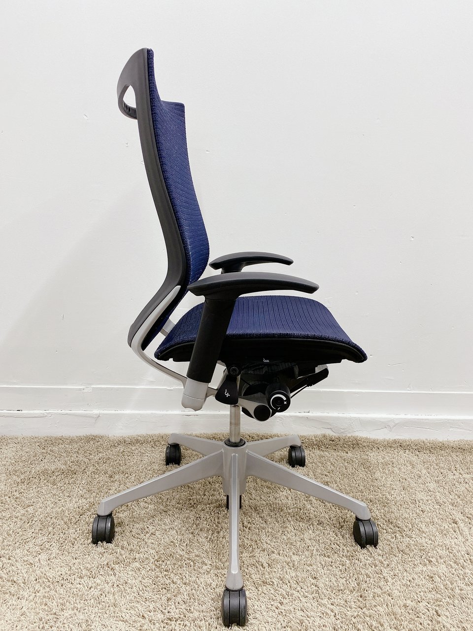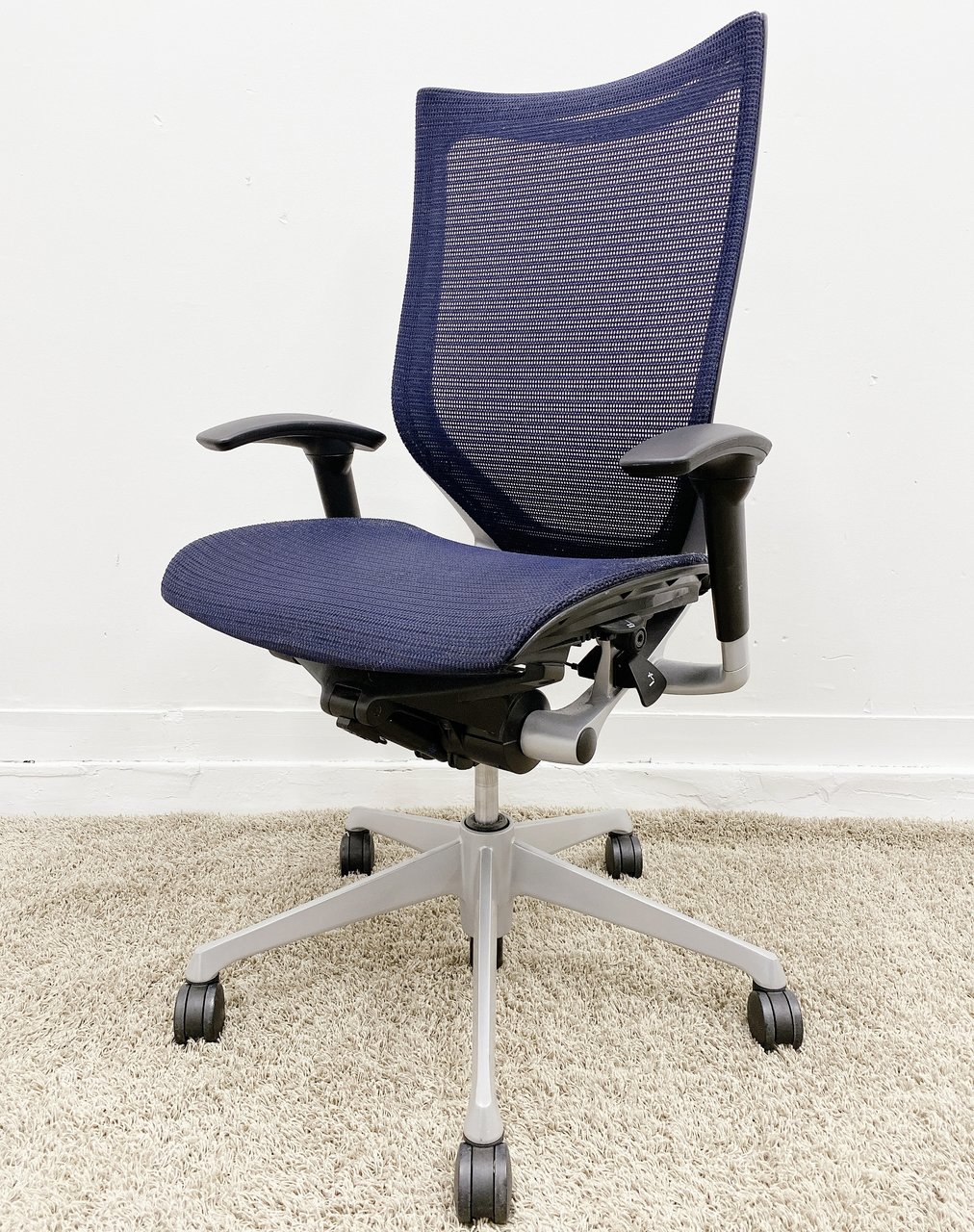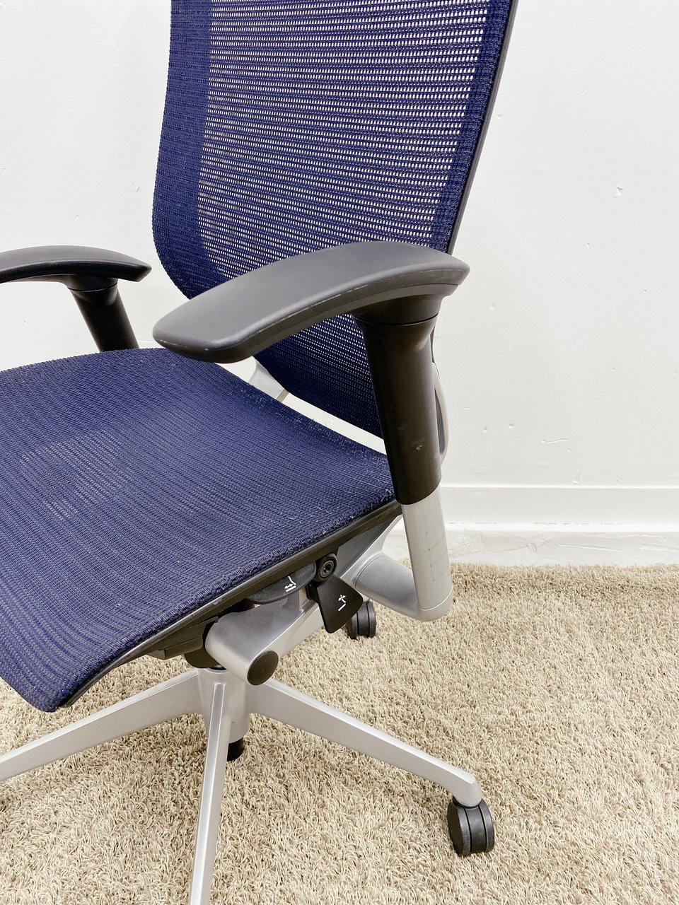 【在庫セール品】【定価約20万円】【人間工学に基づいた快適設計で身体にやさしくフィット!】■オカムラ(okamura)製 バロンチェア 肘付ハイバック 可動肘付 ■メッシュ ■ダークブルー 【ベストなポジションが得られる先進設計!】