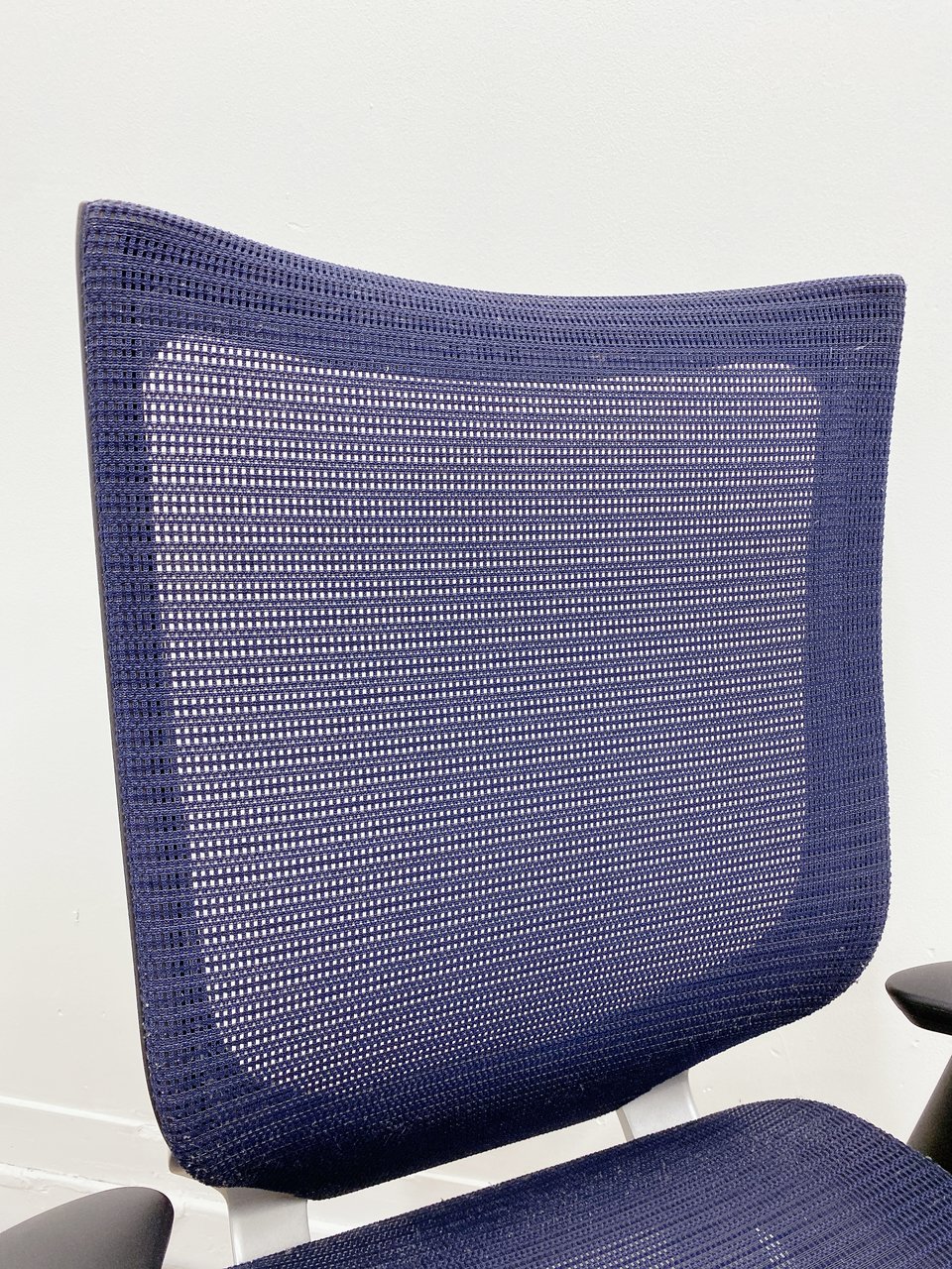 【オフィスの執務室、会議室におすすめ!】 硬めの座面が大人気!国産メッシュチェアの代表格!/オススメ(おすすめ) /人気商品【弊社使用欄:A01036030】■肘付き ハイバック 背面メッシュ ■可動肘 ■ダークブルー × ホワイトシェル/オカムラ(okamura)製 バロン(Baron)チェア