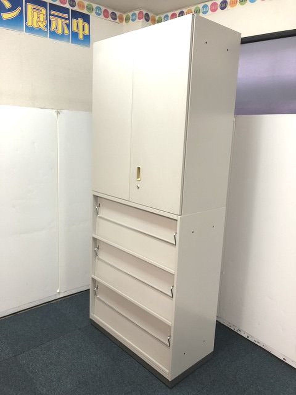 【KS】【定価約14万円!!両開き書庫と雑誌架の上下書庫セット商品!!】【在庫入替】- 茨城南店