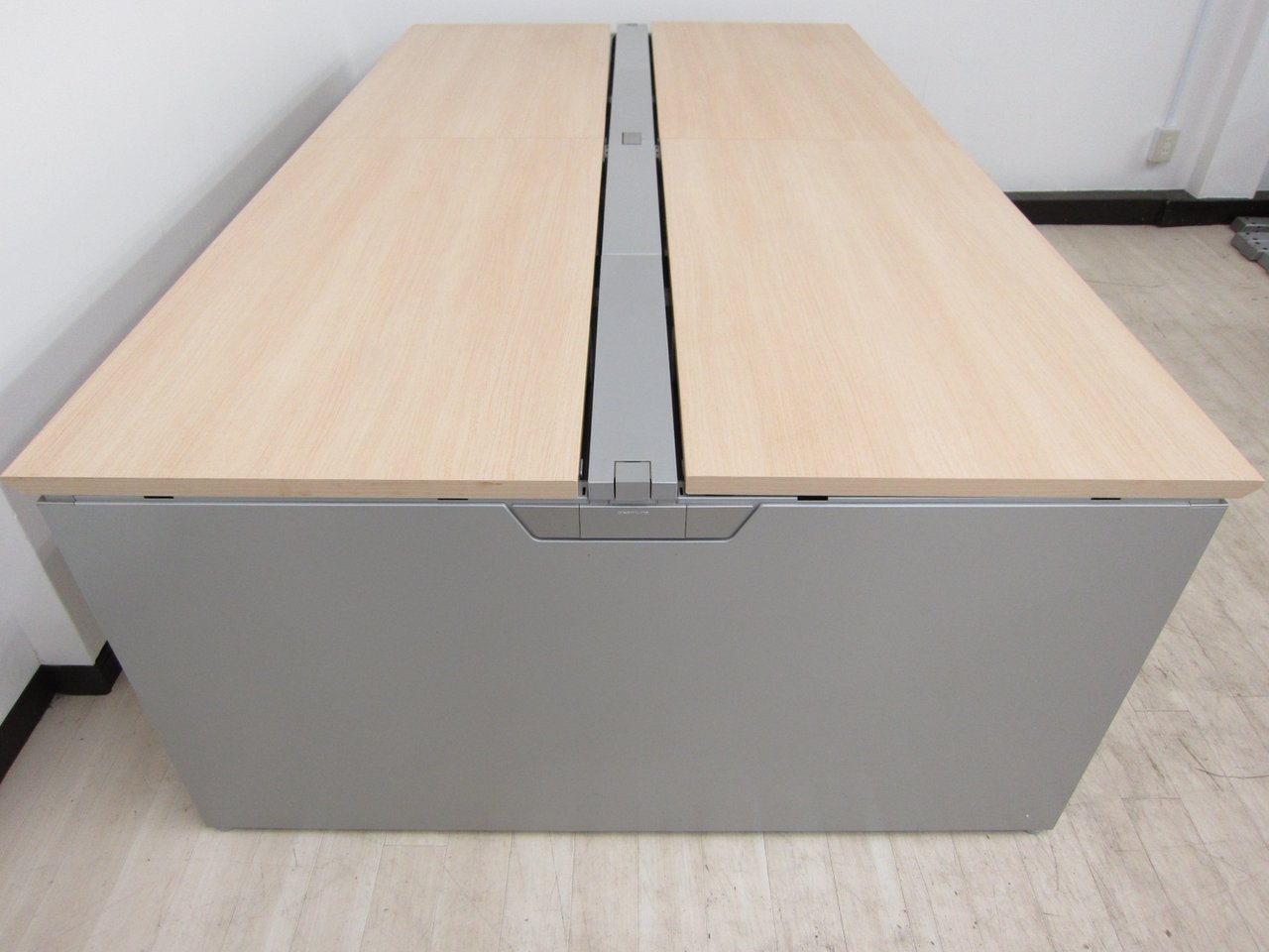 【倉庫在庫品】オカムラ プロユニットフリーウェイ フリーアドレスデスク W2800×D1400 天板:ブライズウッドライト 脚:ホワイト 4名掛け想定 1人当たりW1400のゆったりサイズ