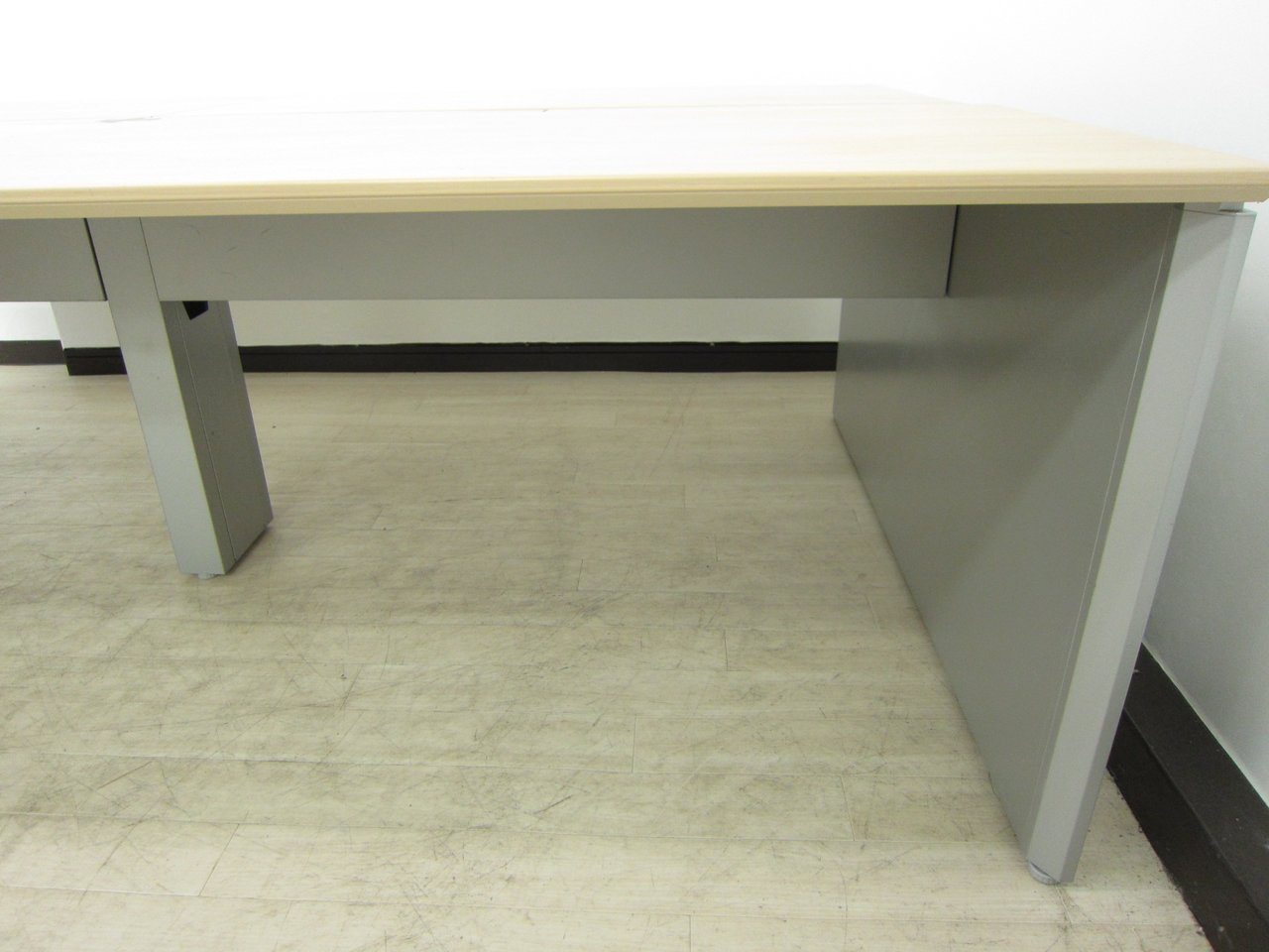 【幅2800㎜】レイアウト変更必須アイテム大人気フリアドデスクシルバー脚仕様※天板カラーネオウッドライト:MK37◆オカムラ製【RP】- 埼玉本店