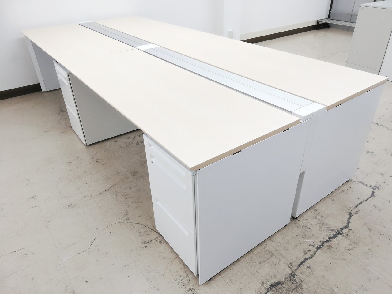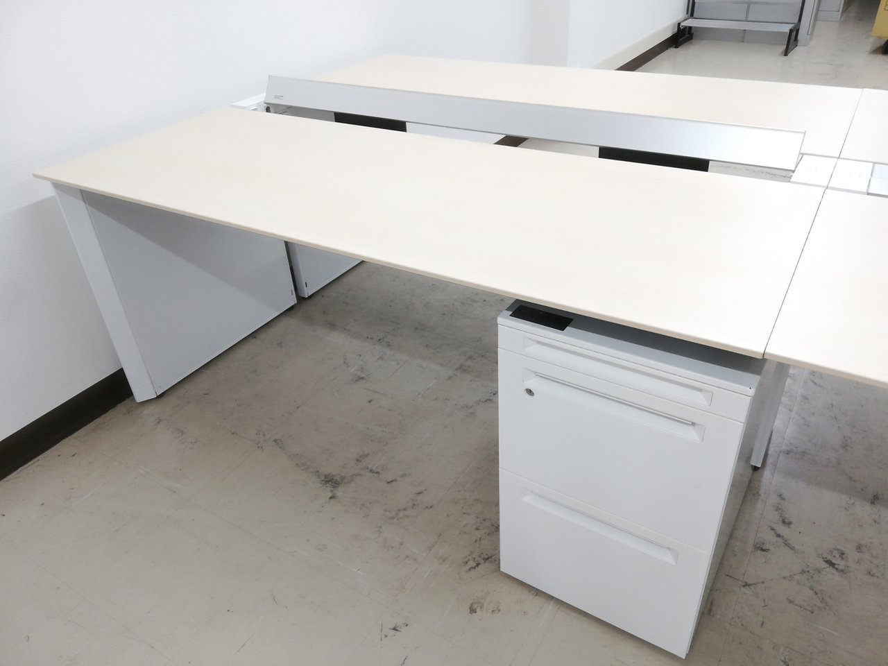 【倉庫在庫品】■4名用デスク■組立簡単!搬入もラクラク■コクヨワークヴィスタ■ナチュラル×ホワイト W3200×D1400 オフィスバスターズ 梅田本店