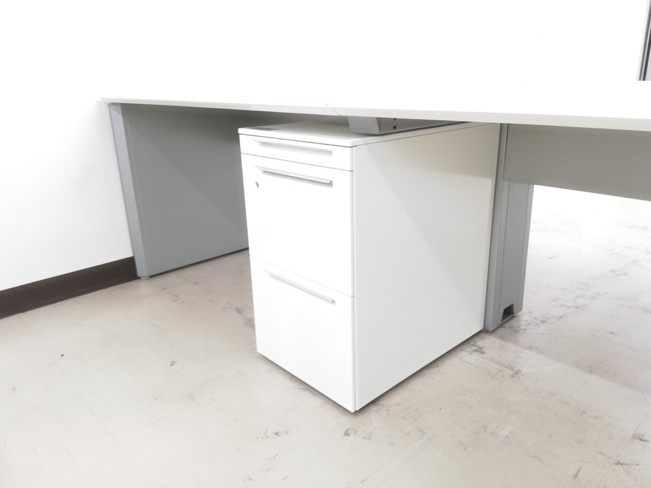 【幅2400㎜】レイアウト変更必須アイテムフリアドデスク&ワゴン4台セット◆オカムラ製天板真っ白ホワイト色(NG99)【RP】- 埼玉本店