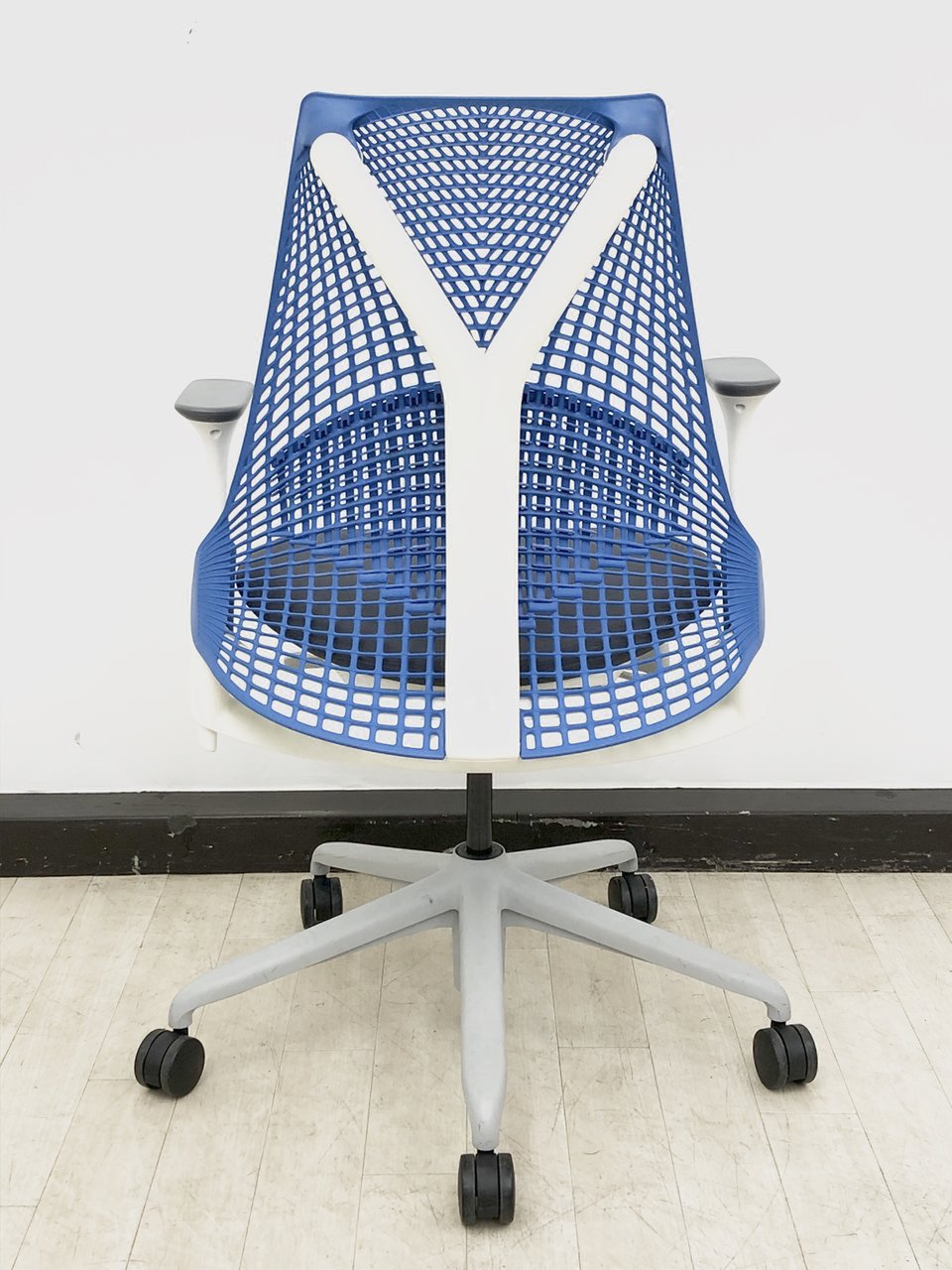 ハーマンミラー製 セイルチェア ブルー色 可動肘 ロット おすすめ 高級 レア 美しい デザイン性◯ デザイナーズ テレワーク 在宅ワーク リモートワーク 前傾 姿勢 チルト【※肘に擦れあり 在庫入替品】- なんば日本橋店