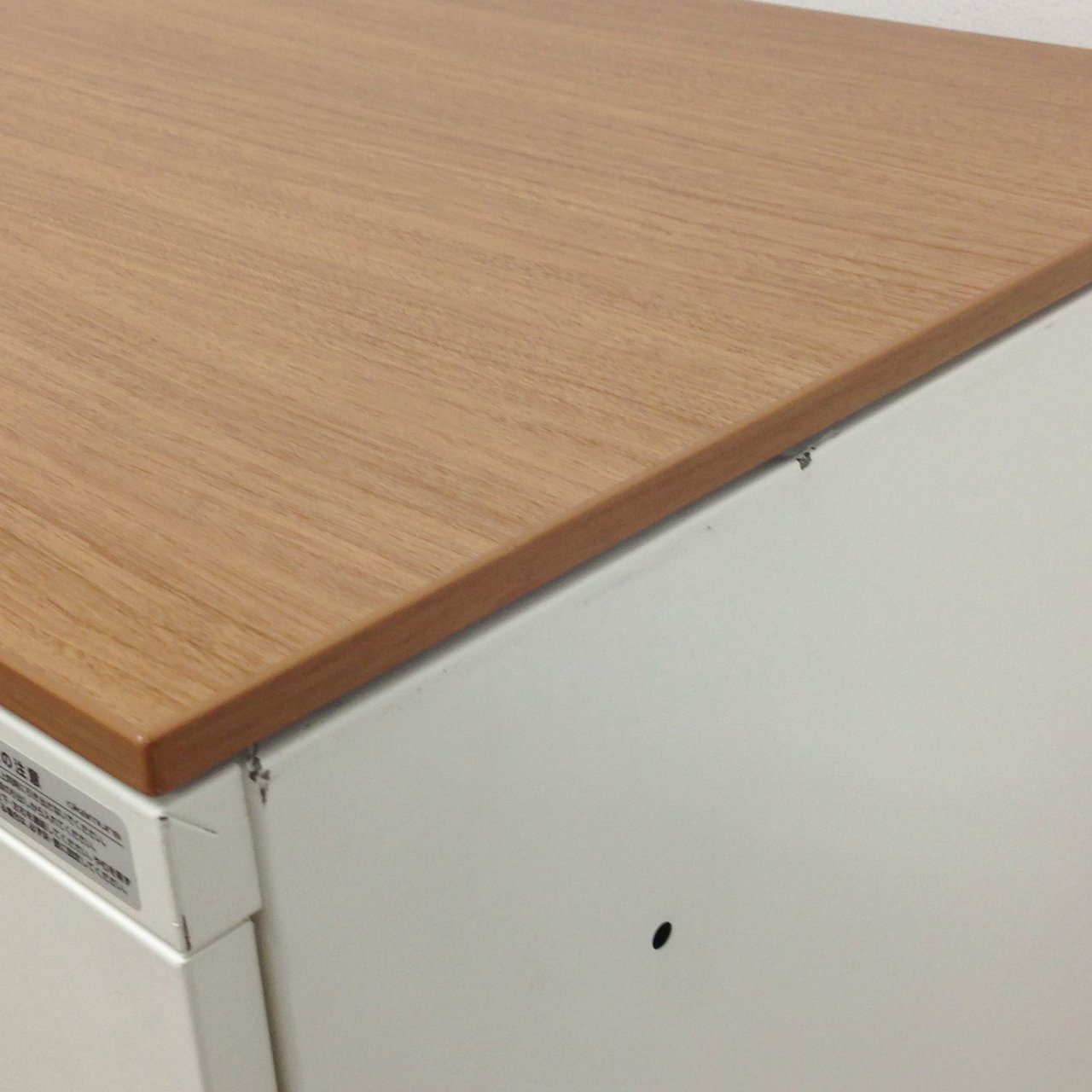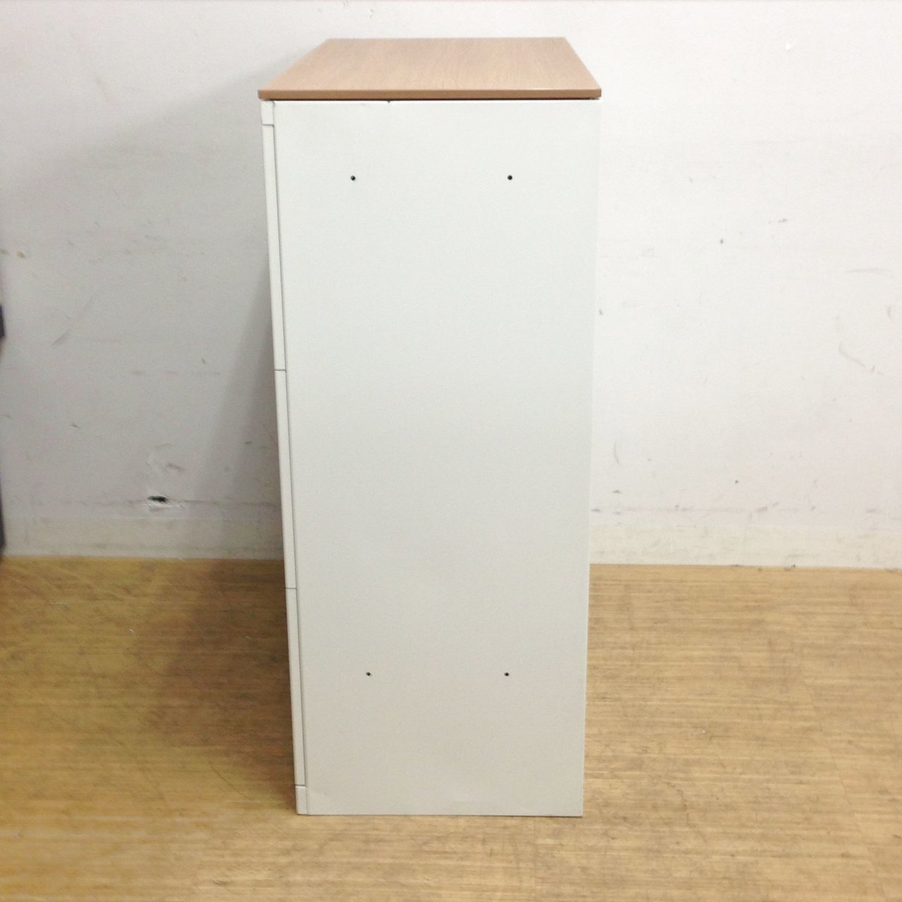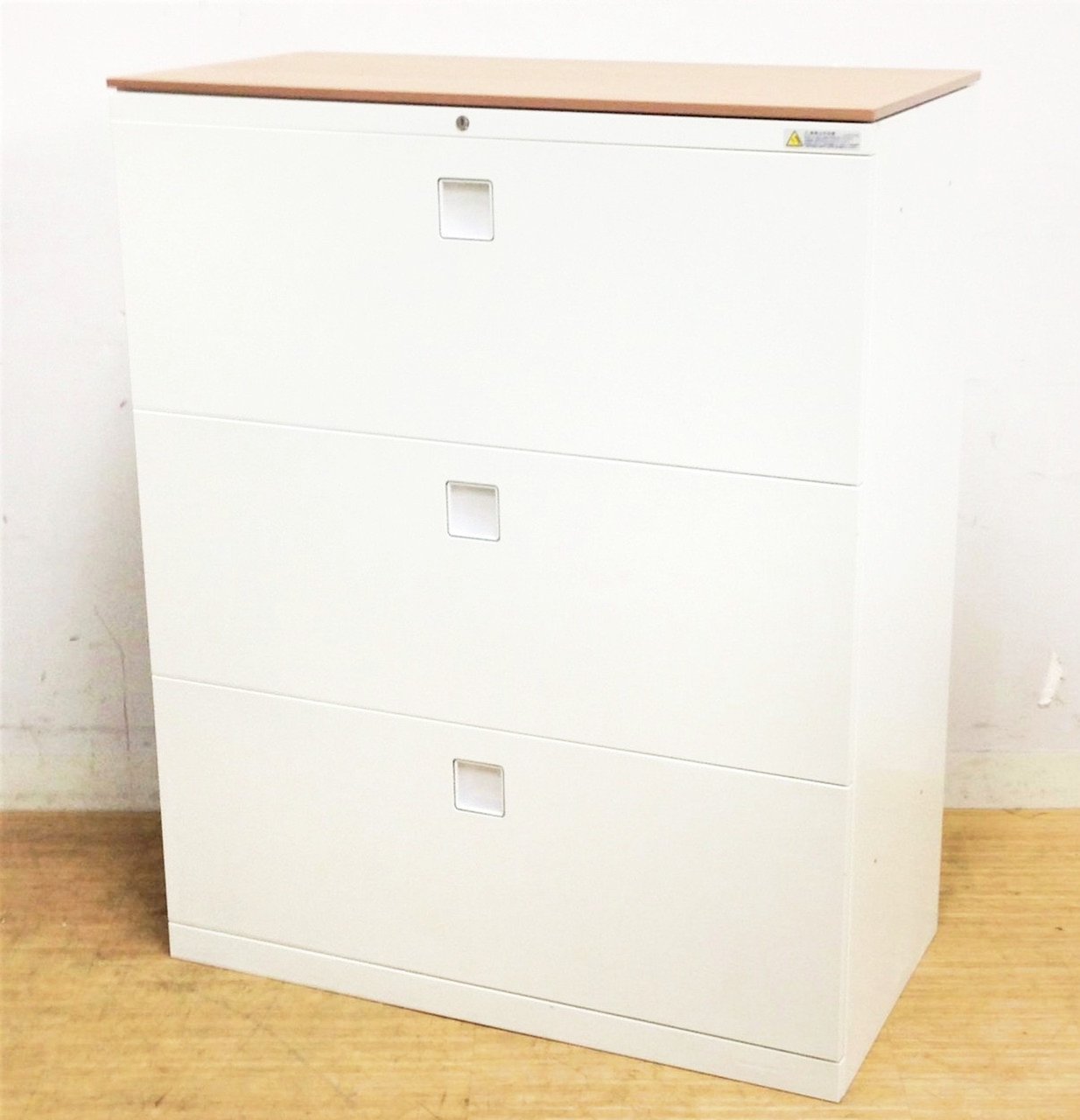 オカムラ レクトライン 3段ラテラル書庫 ホワイト天板 シリンダー錠 鍵付き ※取っ手部分に若干日焼けあり