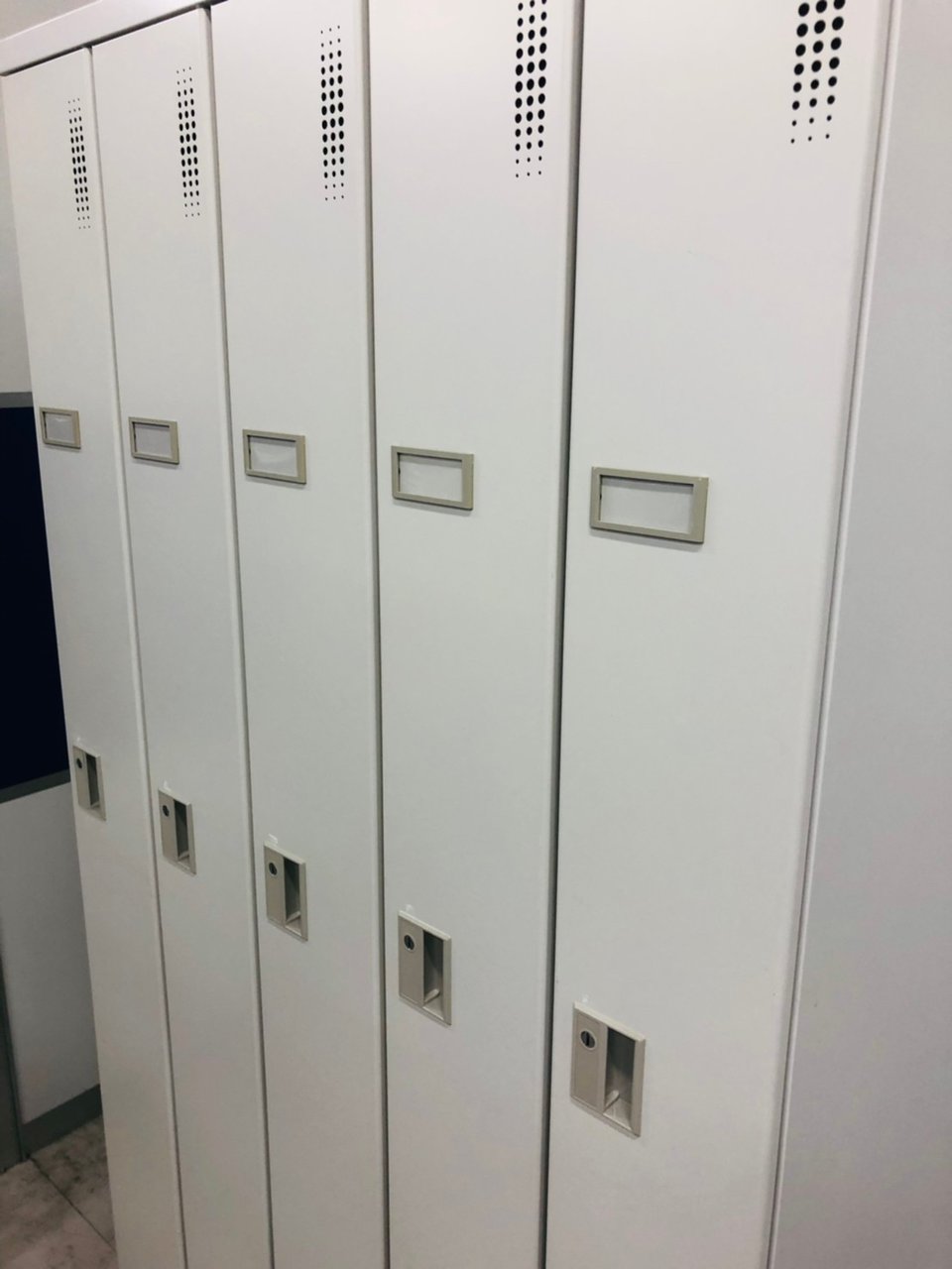 縦長の5人用ロッカーなので1つ1つの幅が狭くなっております!