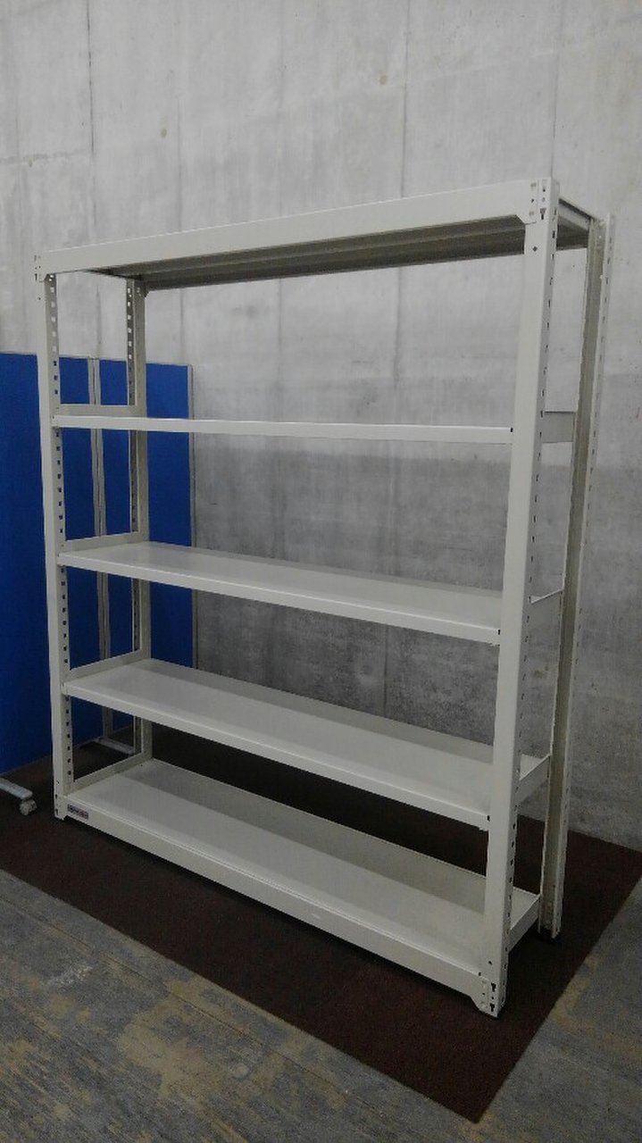 久しぶりに中古の中量ラックが入荷しました!② 天地5段 耐荷重:段/300kg ボルトレスなので組立も簡単!! 注)呼称W1800/D450 実寸W1855/D475 ※マテハン本舗の中古商品は、千葉県柏市に在庫がございます。- マテハン本舗