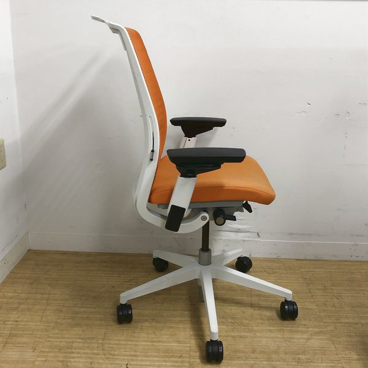 【関東倉庫在庫品】【長時間作業を快適にするフィット感!】【在庫入替セール品】■スチールケース製 シンク 肘付きハイバックチェア ■背:オレンジ・座面:ブラック【弊社使用欄:A01020599】【ECBMC】