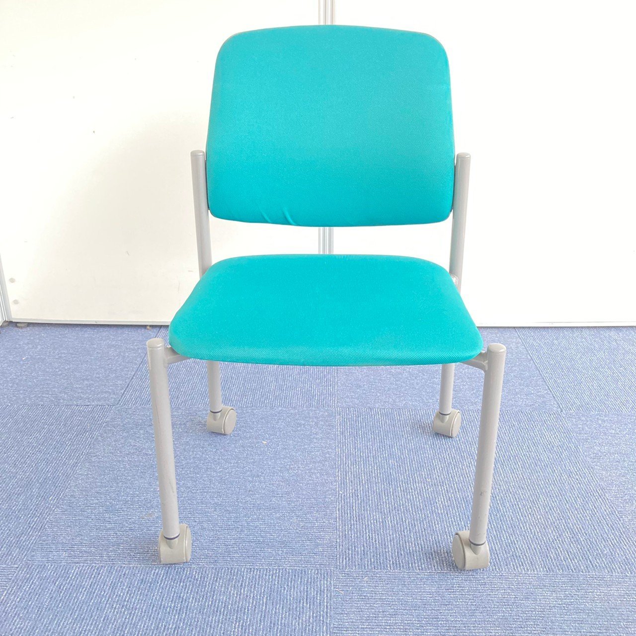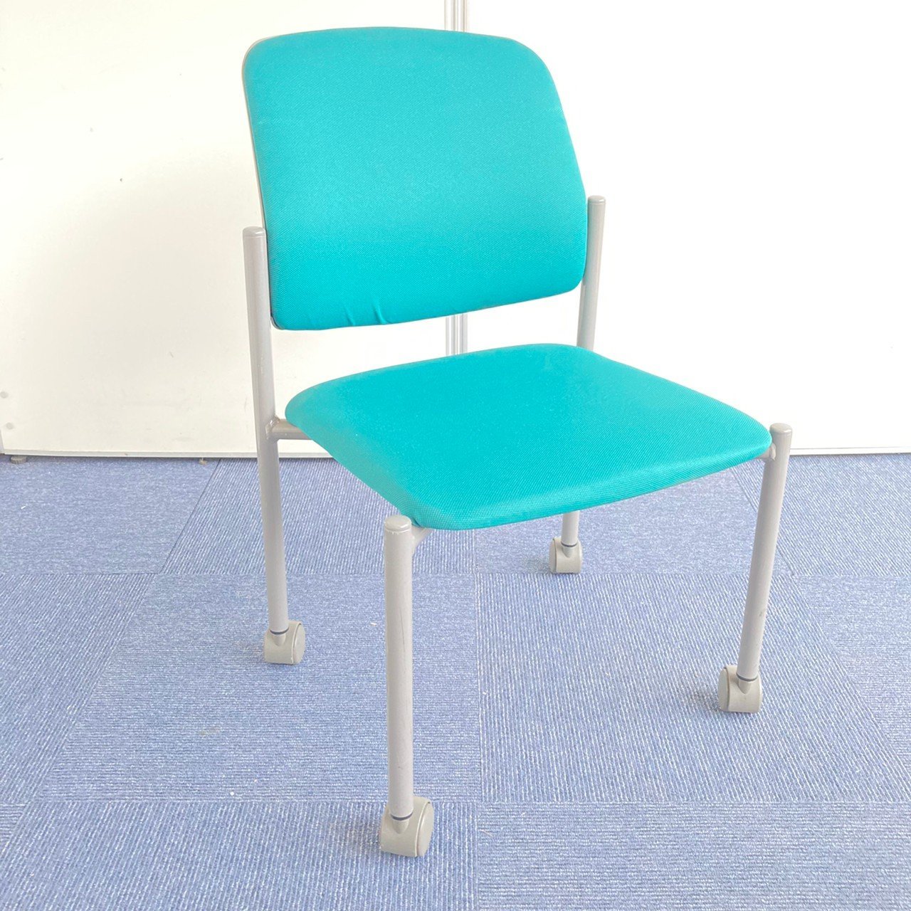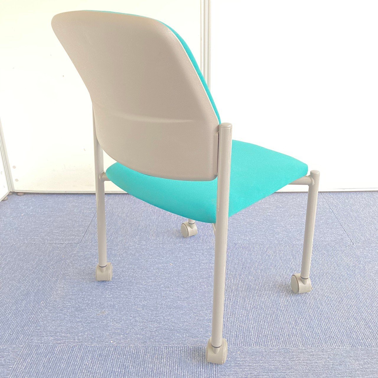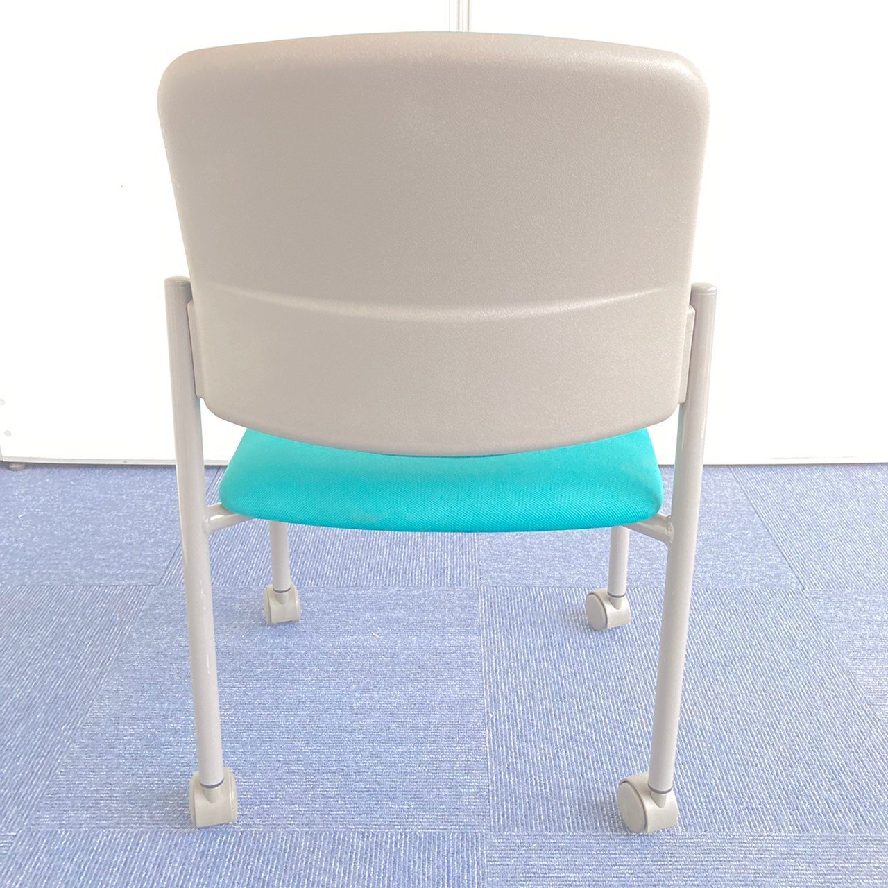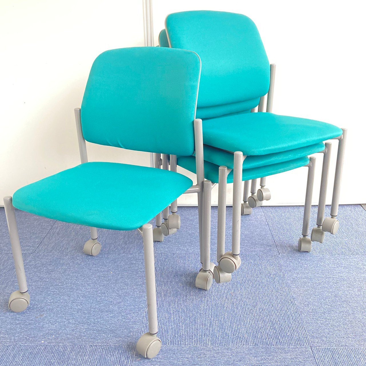 【4脚セット】イトーキ製ターコイズブルーのキャスター付きスタッキングチェア【在庫入替】- 神戸・三宮店