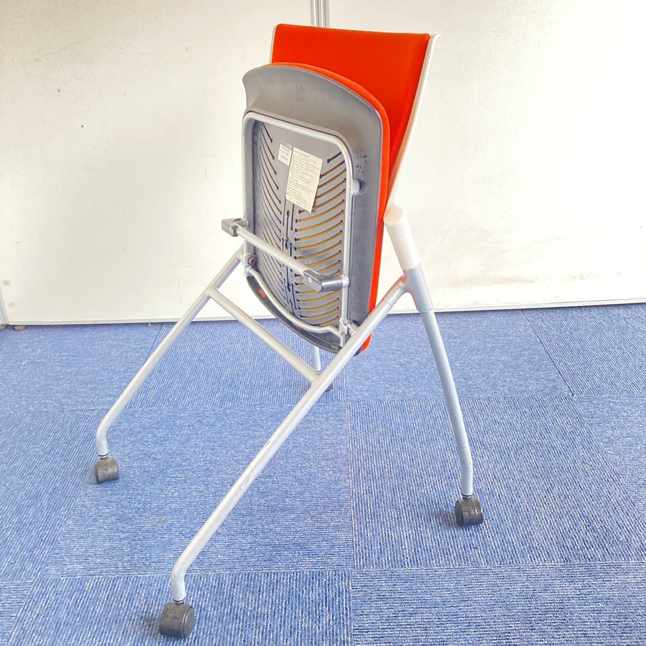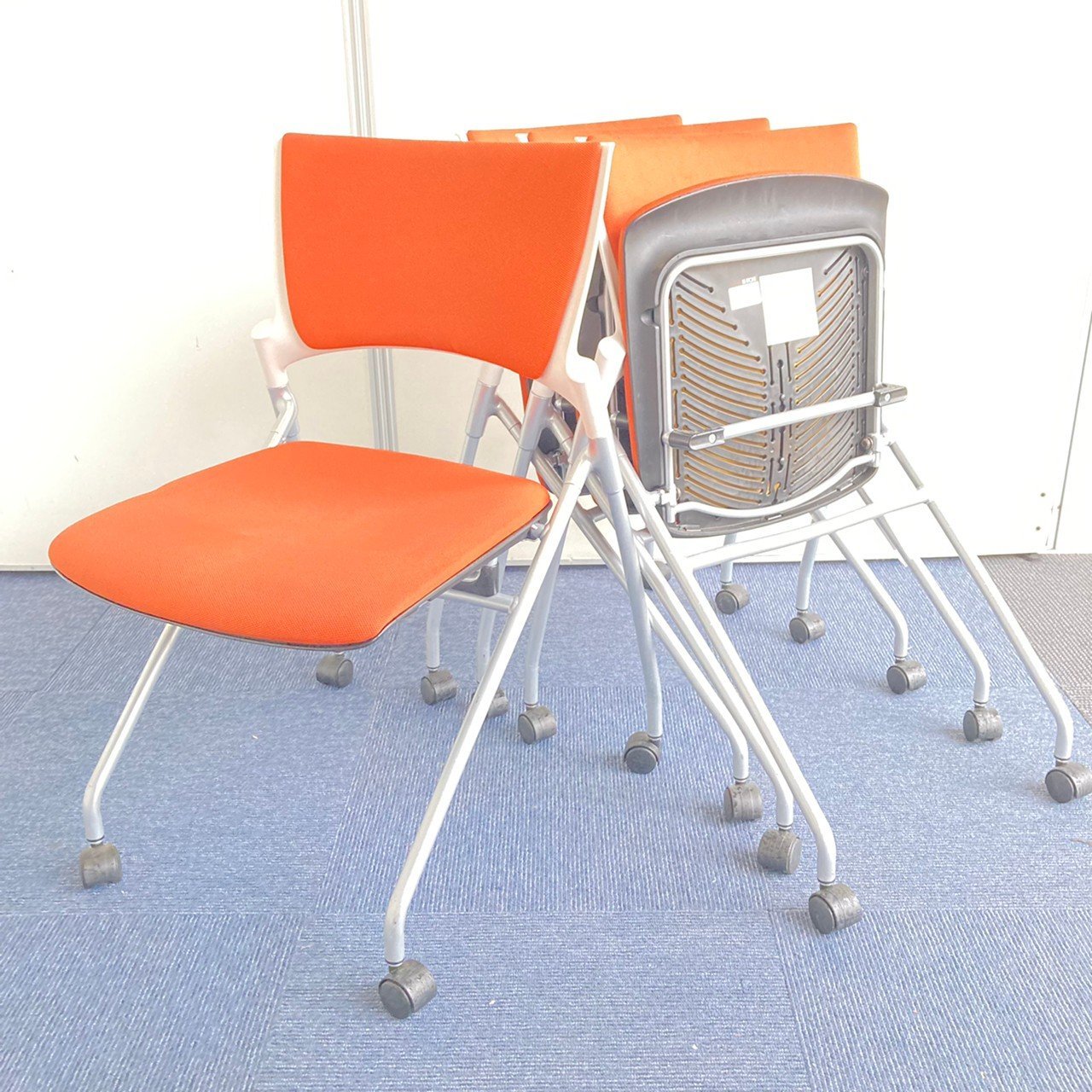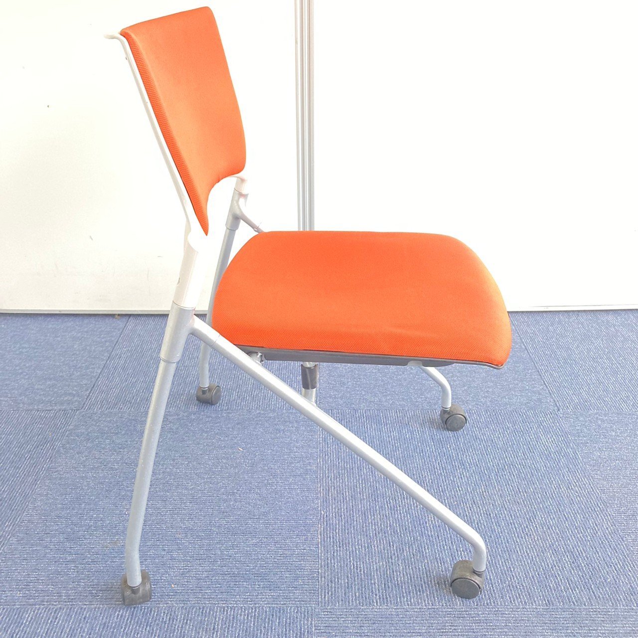 【定価約6万円】【重ねて収納可能!スペースの削減におすすめなネスティングチェア!】■イトーキ/マノス ■ネスティングチェア ■オレンジ