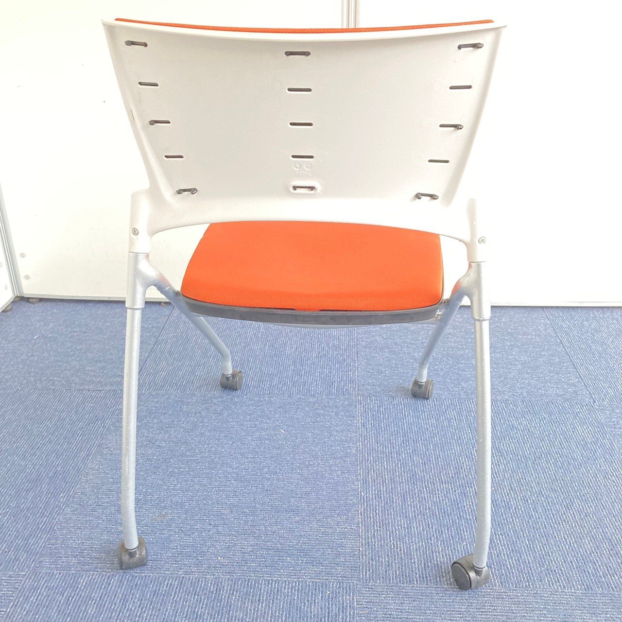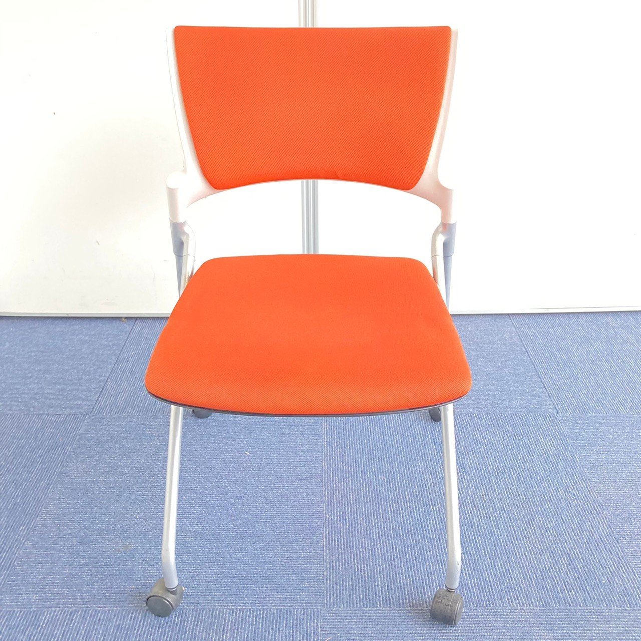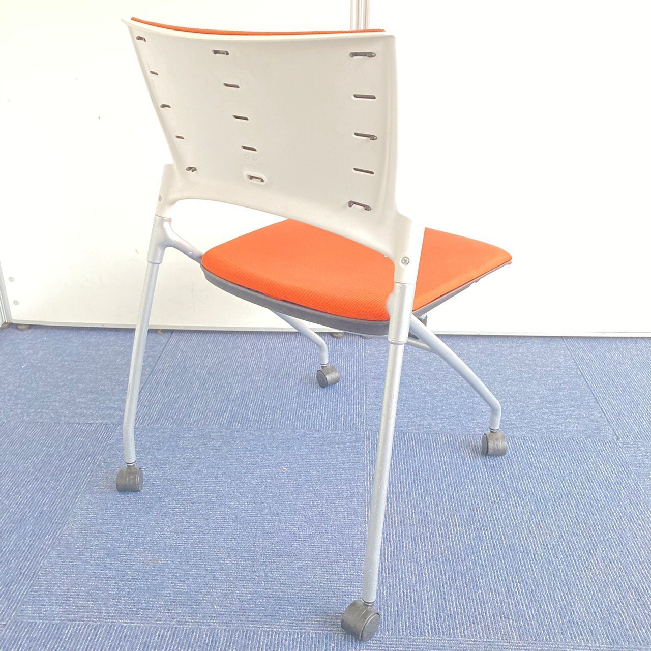 【人気のネスティングチェア!ミーティングスペースに最適!】■イトーキ(ITOKI) マノス(MANOSS) ネスティングチェア ミーティングチェア ■背パッドなし キャスター付き ■アンバーオレンジ×背面ホワイト【入替セールにつき30%OFF!】