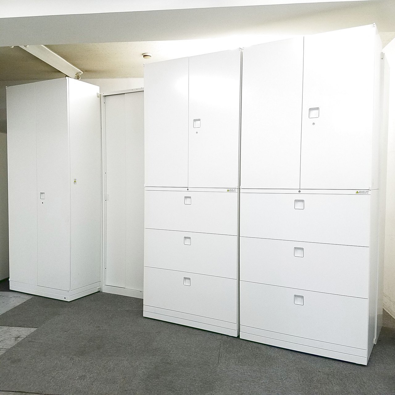 収納・キャビネット(書庫)も充実しています!引出しタイプもあります。多人数用ロッカー、パーソナルロッカー、貴重品ロッカーなどもあります。ご相談くださいませ!