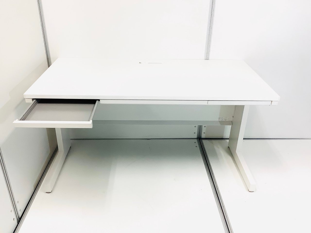 平机 内田洋行 スカエナ(SCAENA) 配線:Ktype(開閉式のカバータイプ) ホワイト天板 引き出し付き ゆったりつかえるW1400サイズ