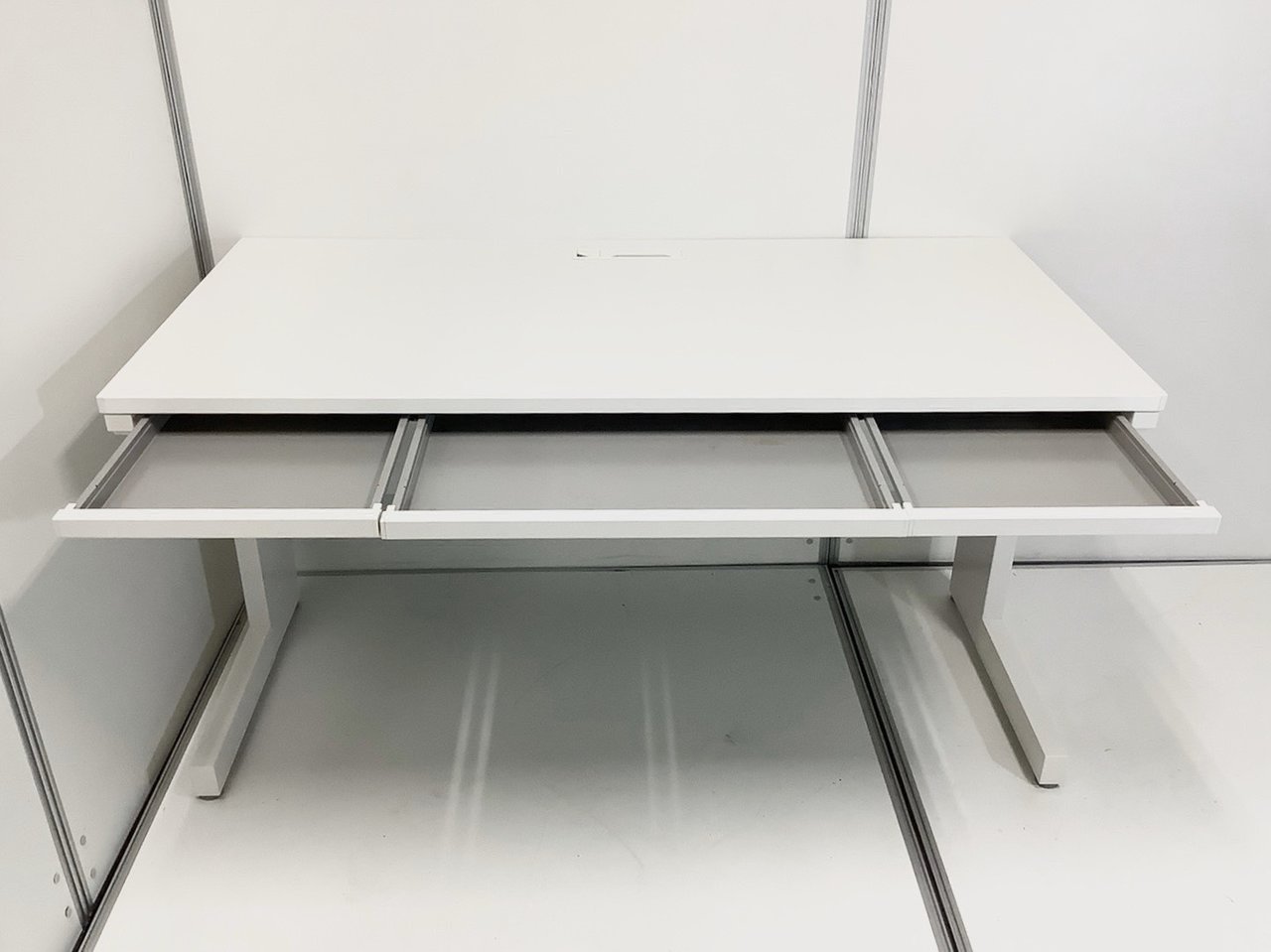 【T8】商品入替のため、残り1台限り】ウチダ製 スカエナ ホワイト 注意※薄型引出し無し Kタイプ/奥一直線配線タイプ W1400サイズ W1400平机!!