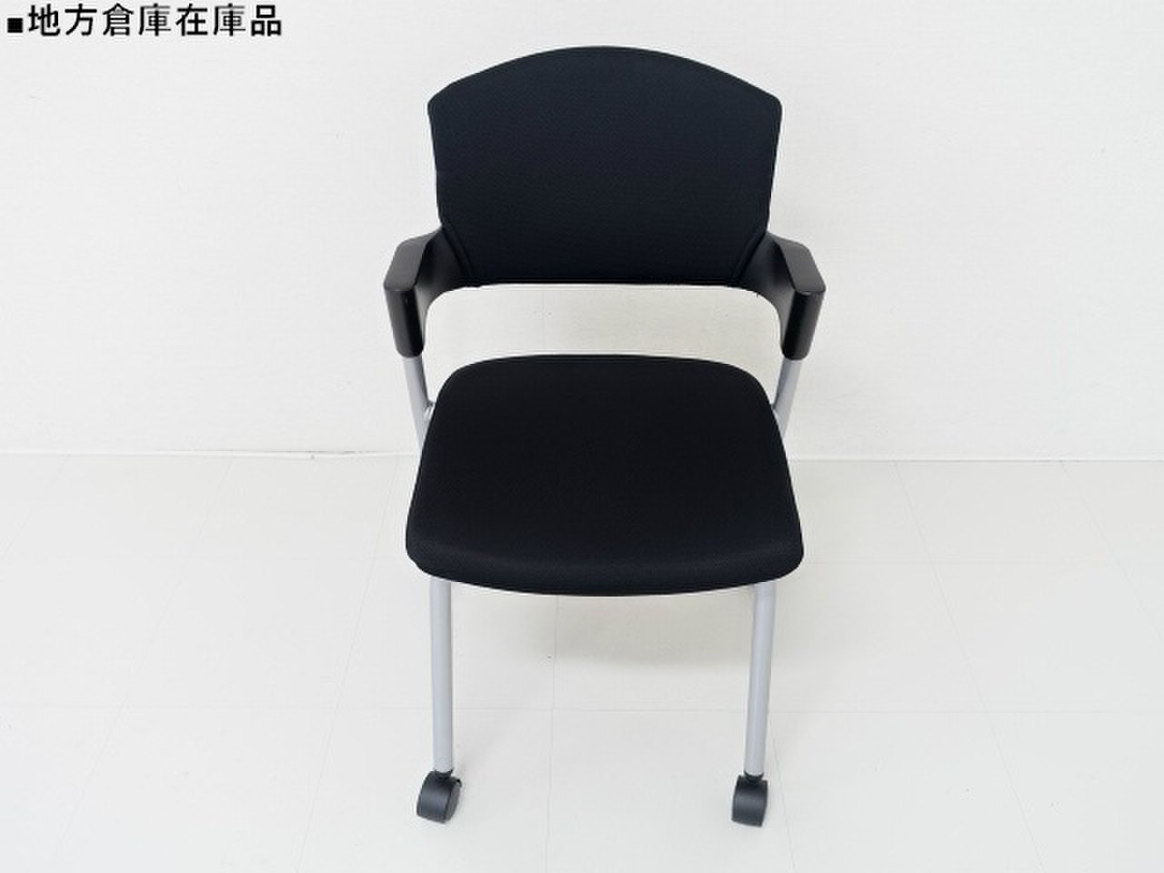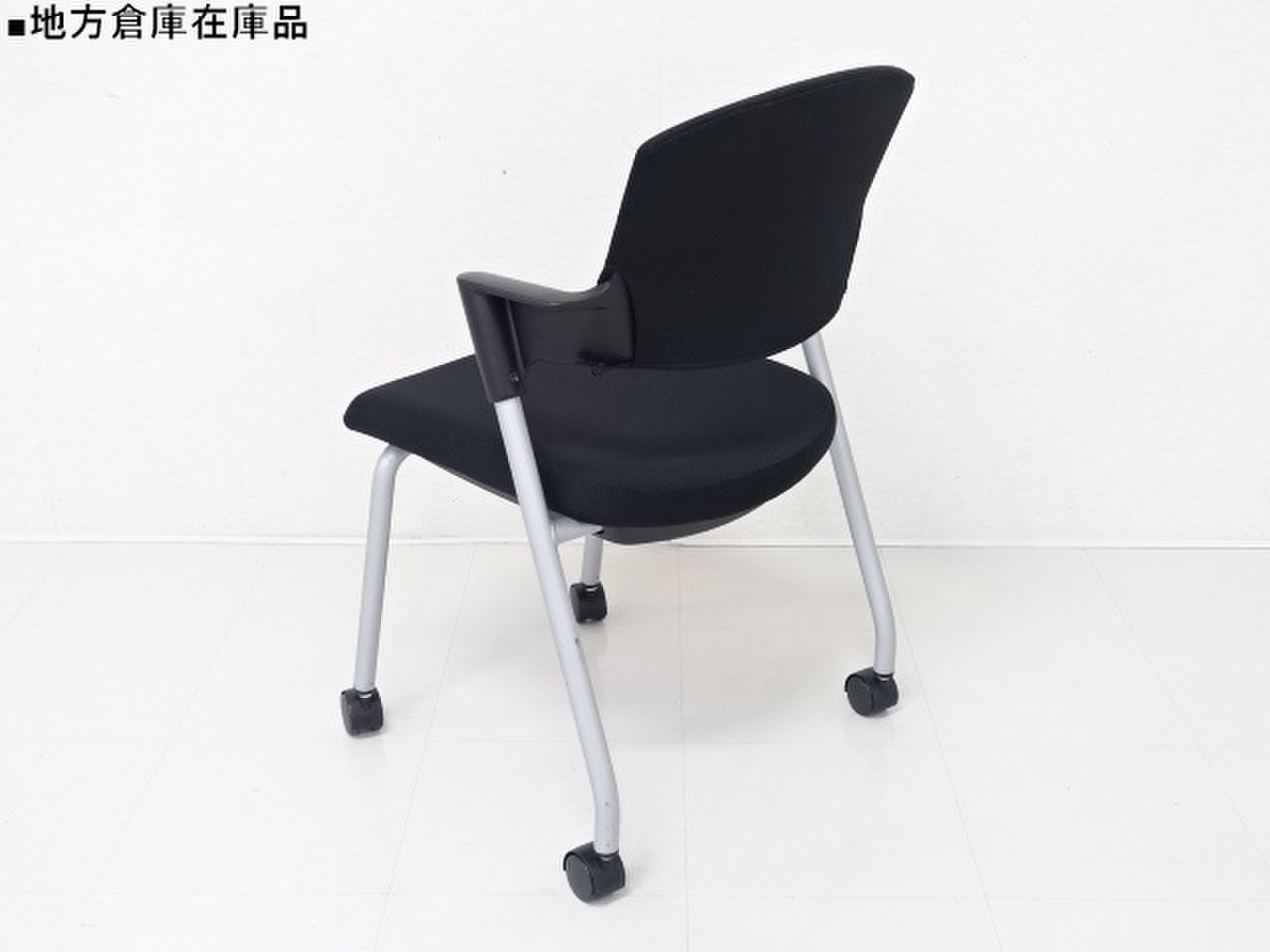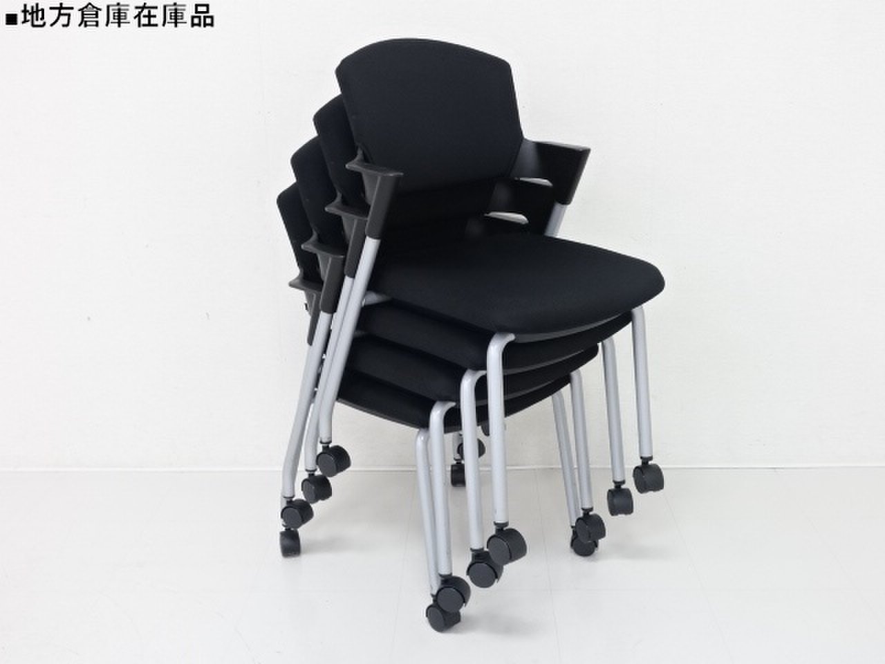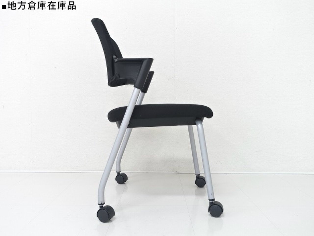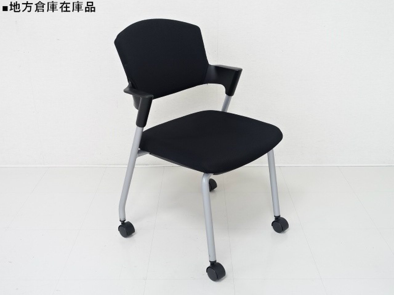 【6/16・8脚入荷予定!】【シンプルスマートなスタッキングチェア!分厚いクッションで長時間でも快適な座り心地!】■コクヨ製 プロッティ スタッキングチェア 肘付ミーティングチェア ■固定肘 ■キャスター付 ■ブラック ■背面樹脂 オフィスバスターズ梅田本店
