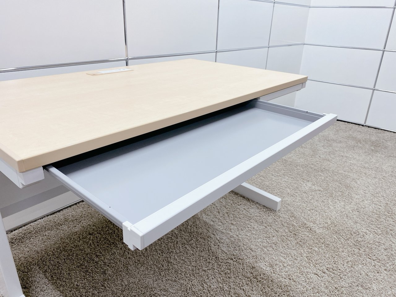 【在庫入替セール】【3台限定!】ウチダ製 スカエナシリーズ Kタイプ ナチュラル天板 W1200サイズ 平机 配線カバー 引出し付 おしゃれ