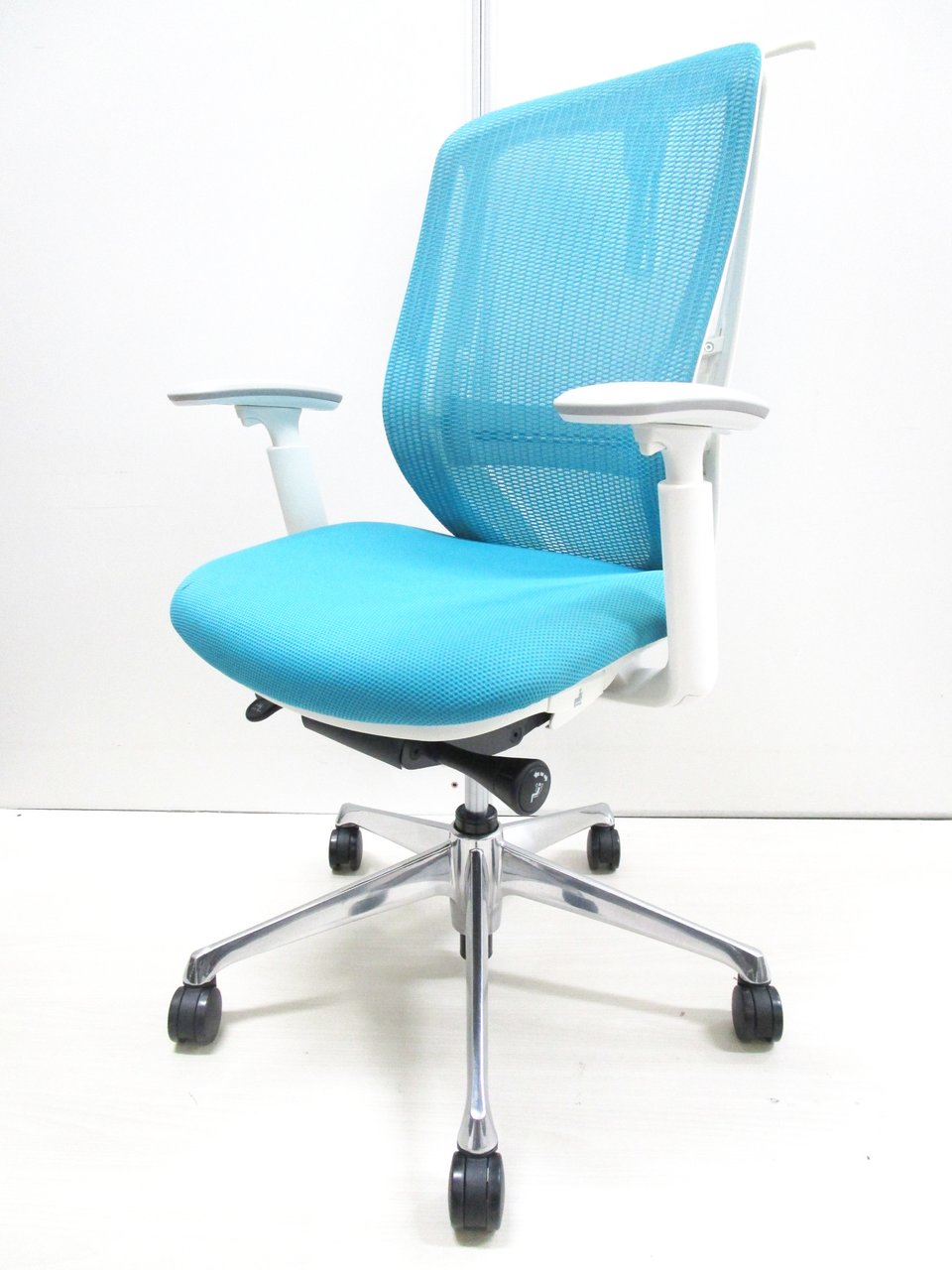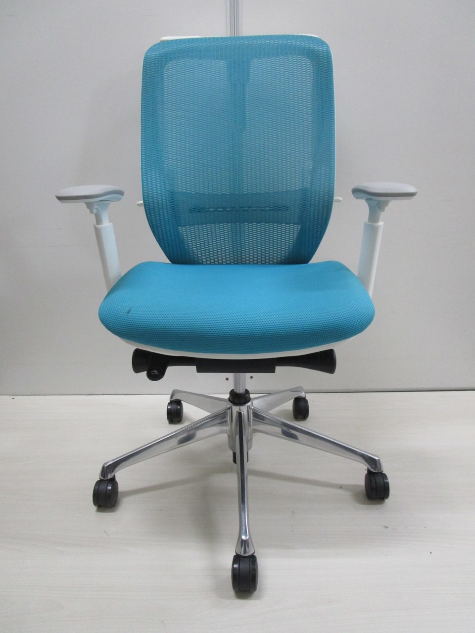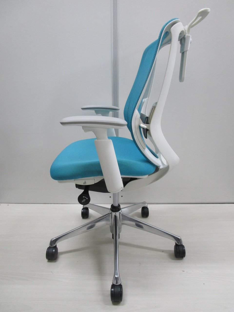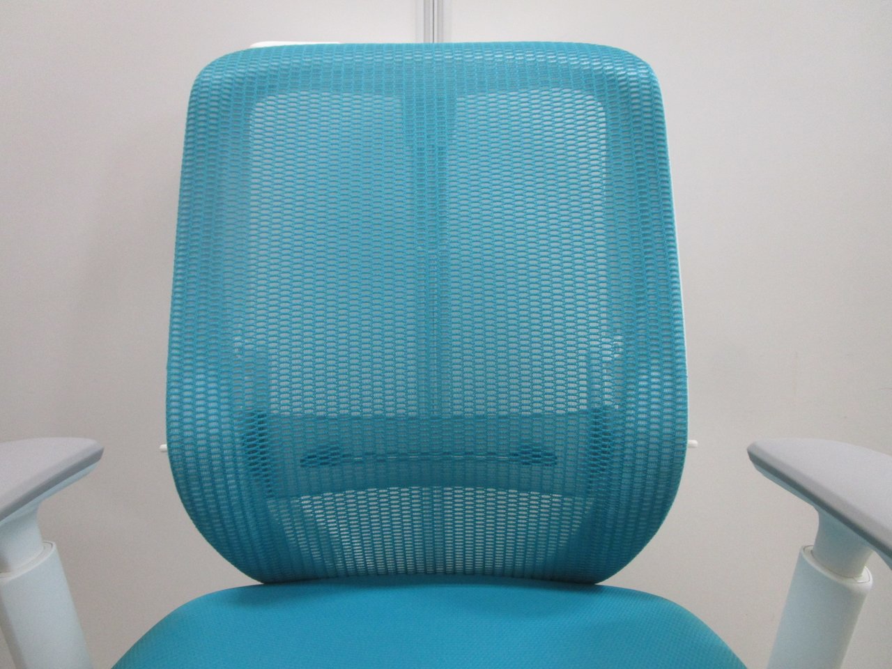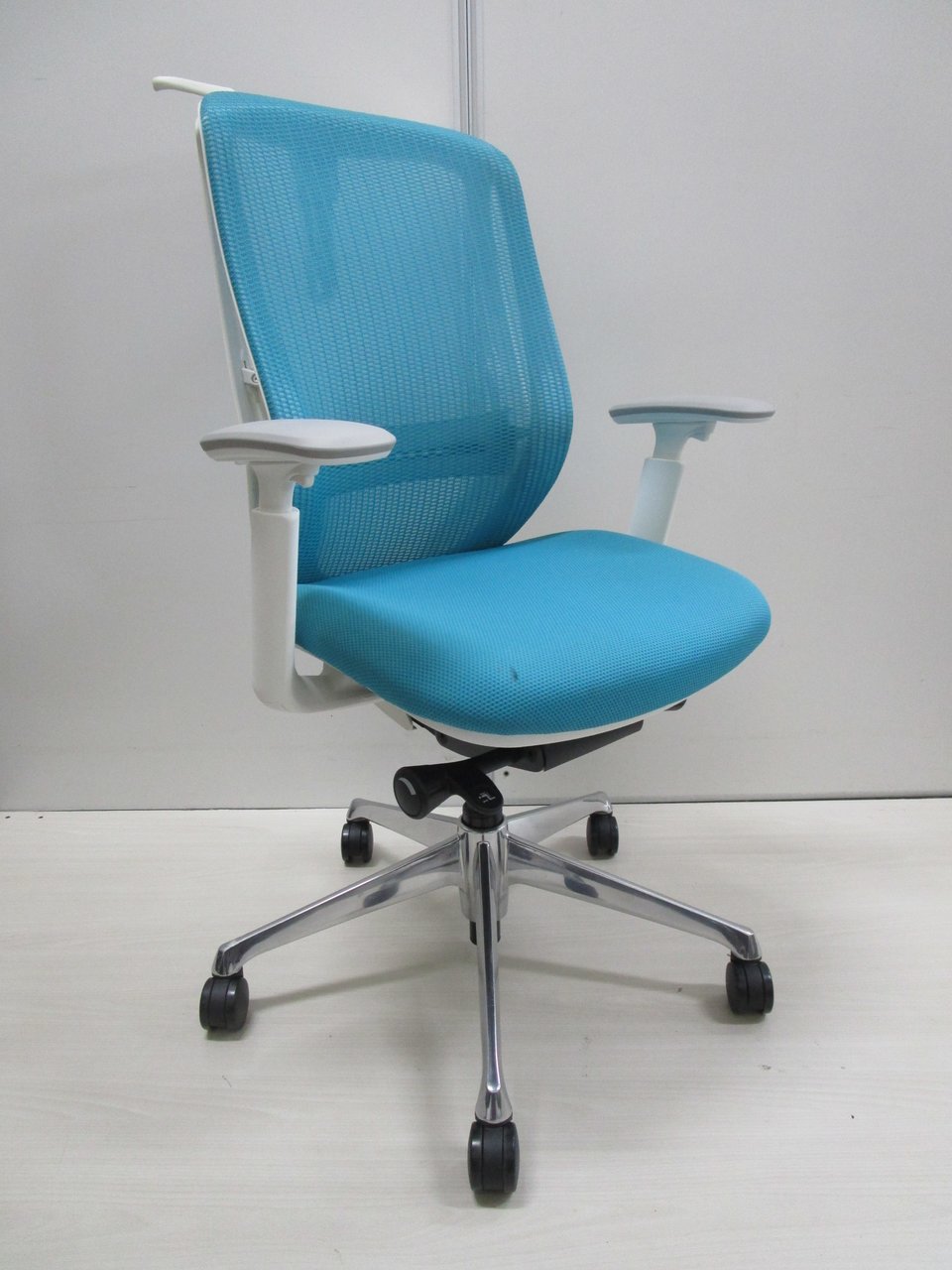 《現物写真だから安心!》オカムラ製の人気オフィスチェア【シルフィーメッシュ/可動肘/ヘッドレスト付き/ブルーグリーン】が先着1名様ご案内可能です!