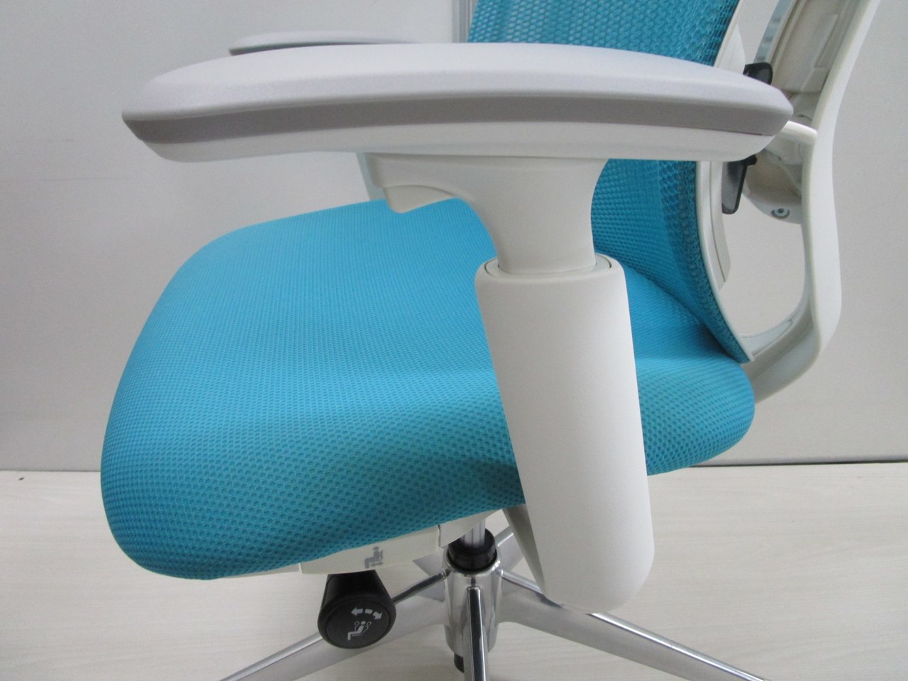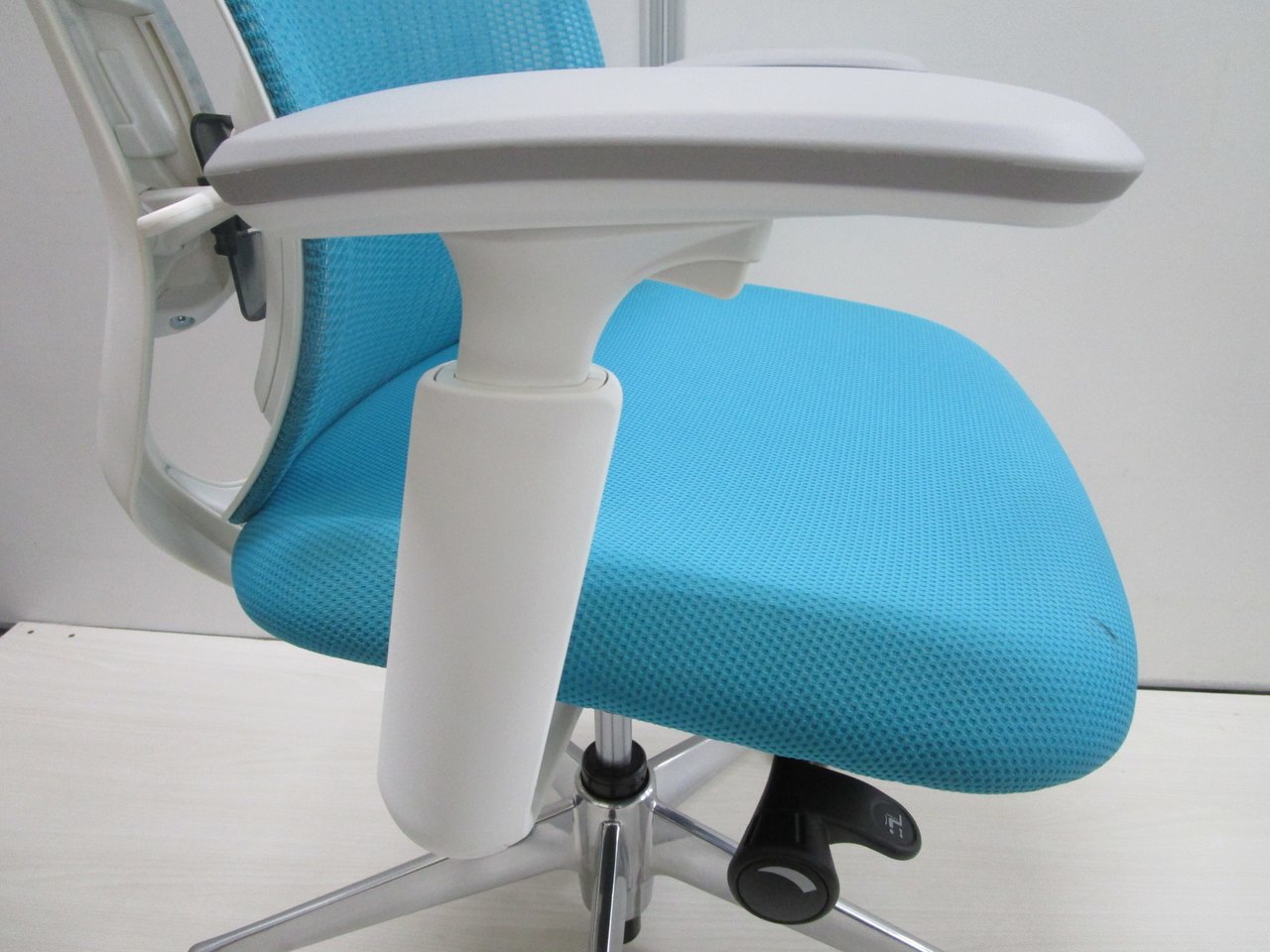 鮮やかなライトブルーの座面・背面