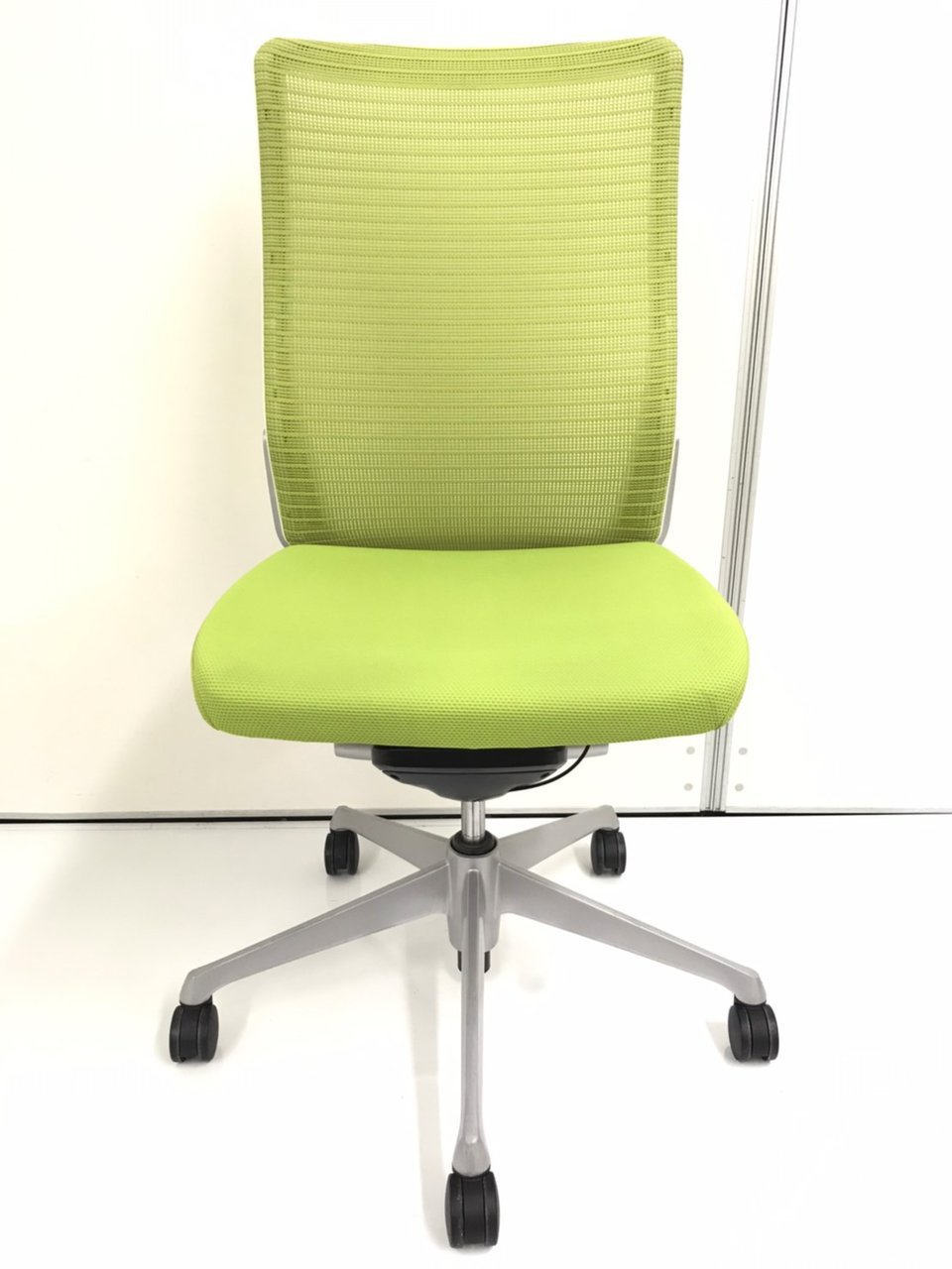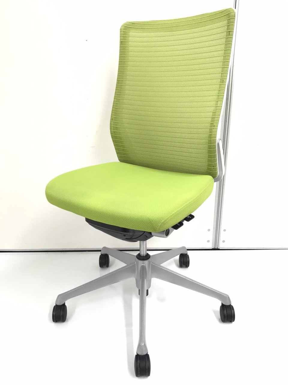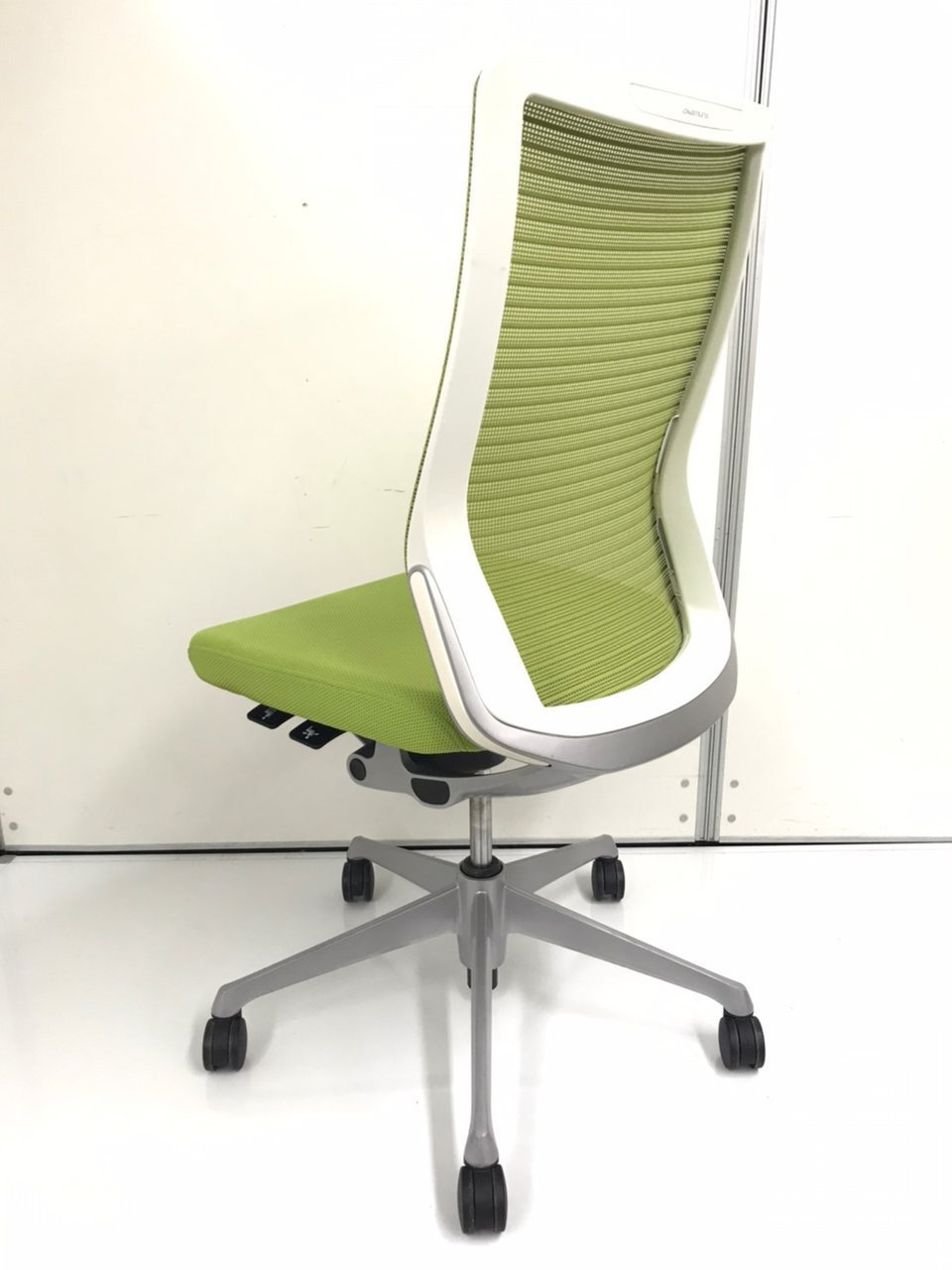 ★【T10】【商品入替のため、残り1脚限り】オカムラ製 コーラル(Choral) ライムグリーン ホワイトシェル ハイバック 座面前後 チェア 背面メッシュ どんな空間にも調和するデザインと最上級の操作性! 肘無しハイバックチェア!!