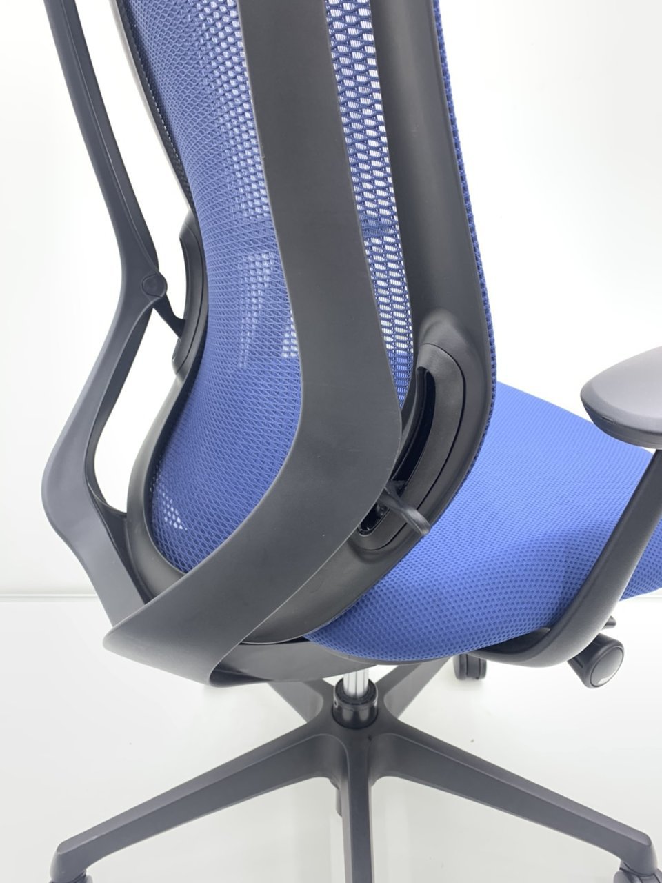 【前傾機能チェアの代名詞!背のカーブを変えられる新感覚のオフィスシーティング!】■オカムラ(okamura)製 シルフィー(Sylphy)チェア 肘付き ハイバック 背面メッシュ ■可動肘・ハンガー付 ■ブルー×ブラックシェル【IB】
