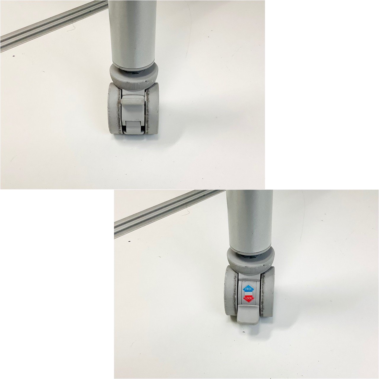 - 一部不具合あり天板歪み、アジャスター無し、キャスター使用不可ようなそのテーブルの本来の効用を果たすための機能以外の一部が使用不可な状態。(例、キャスターロッ ク機能使用不可、棚板無し等がある。)