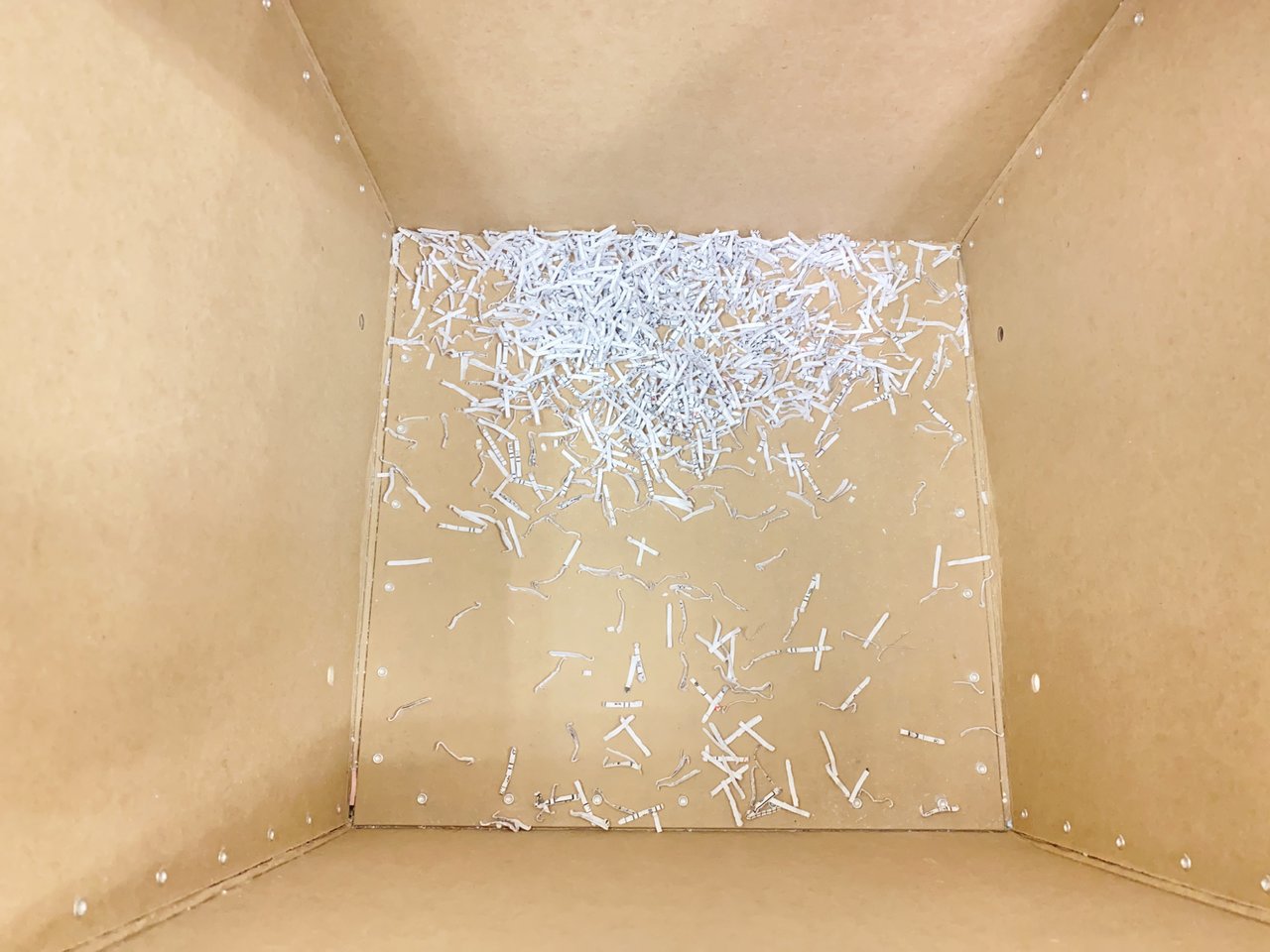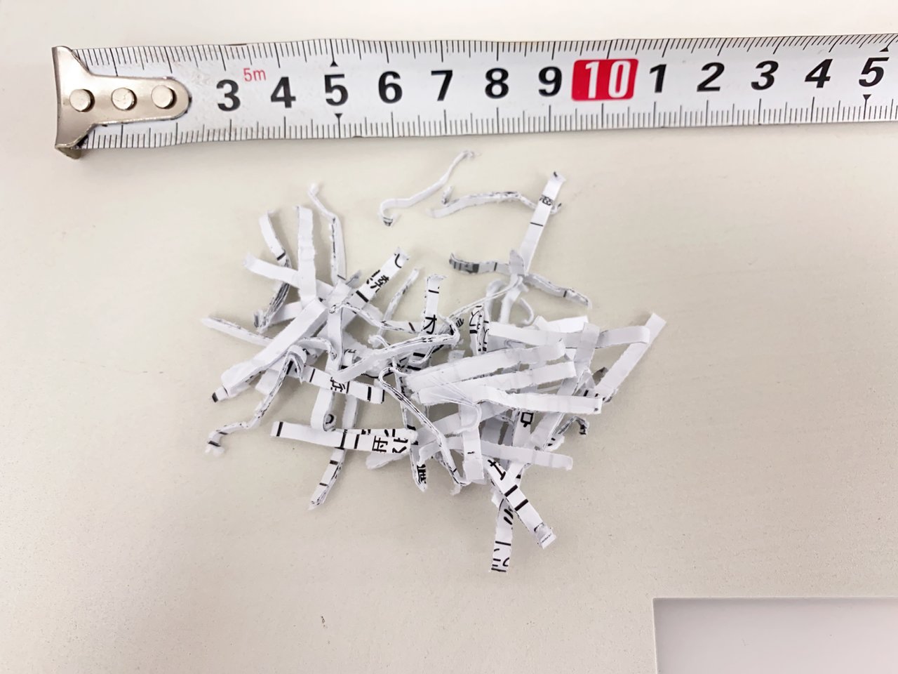 縦切り横切りを一度に行う方式で、約2.5×30㎜の裁断くずは