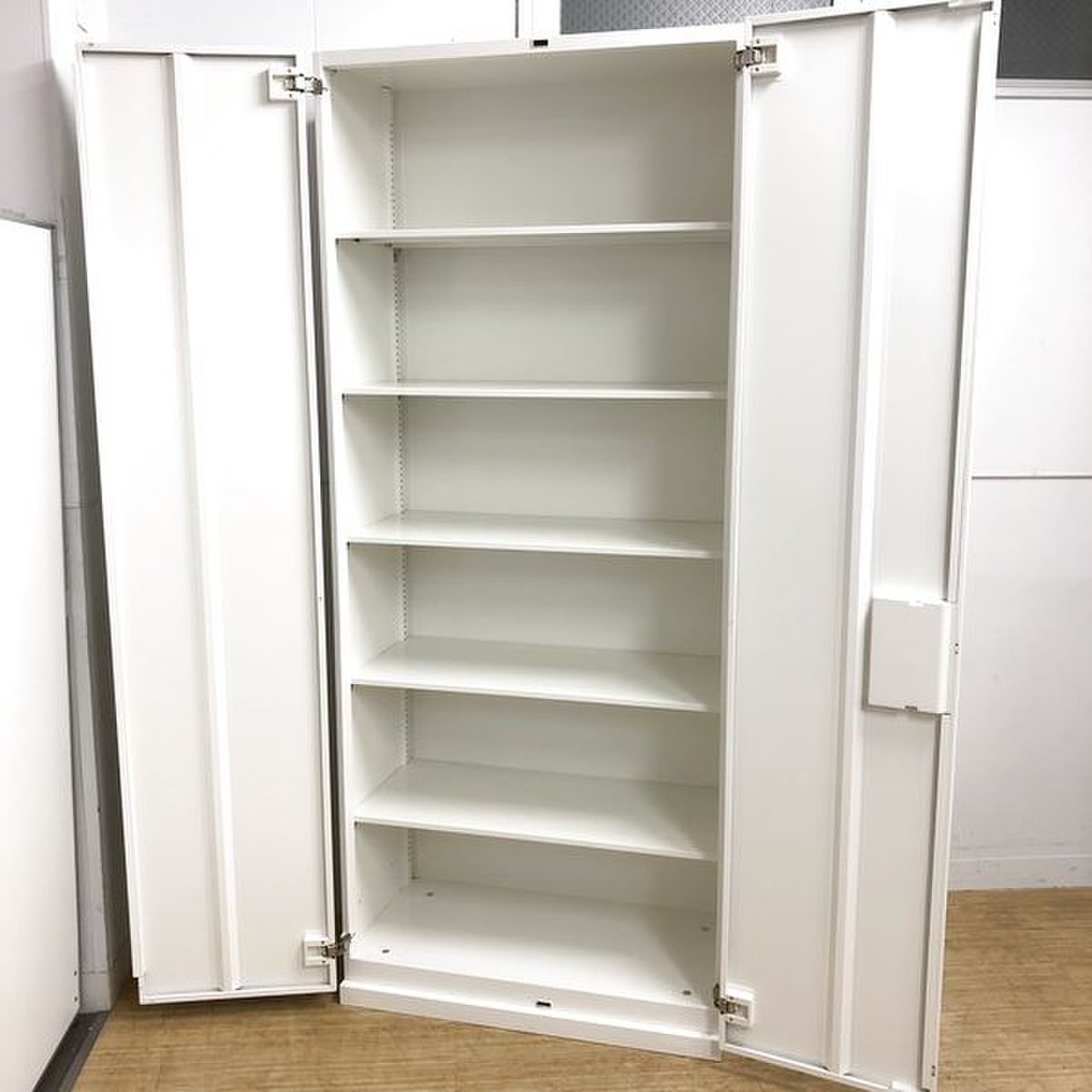定番サイズ オカムラ/レクトラインシリーズ カラー:ネオホワイト 両開き書庫 鍵付き シリンダー錠 天板無し